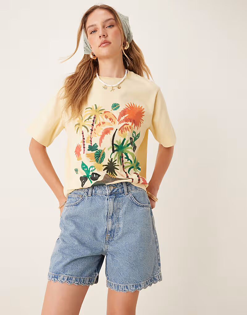 Джинсовые шорты с фестончатым краем, средне-синего цвета Asos Design 3 380₽