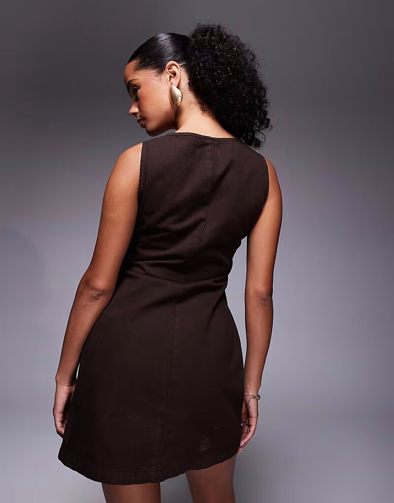 Джинсовое платье шоколадного цвета с V-образным вырезом и пуговицами Asos Design