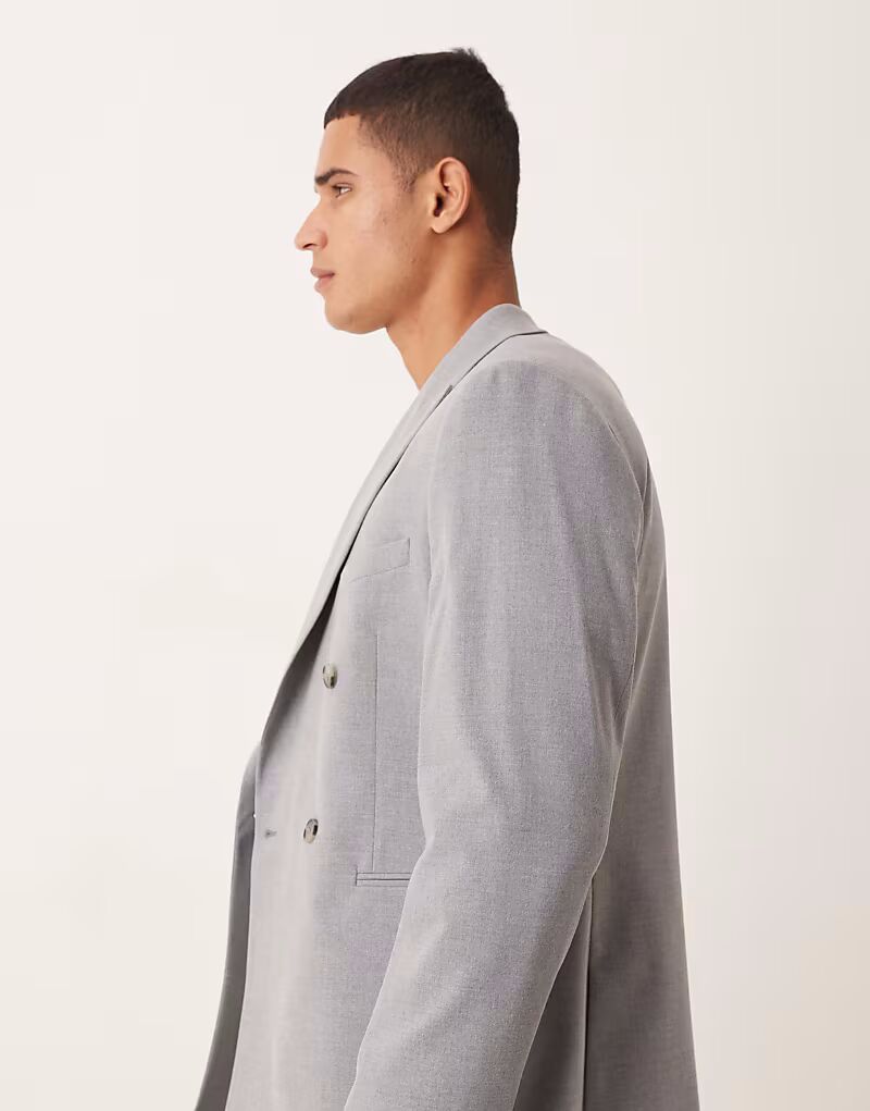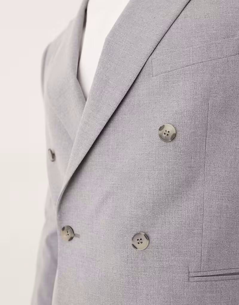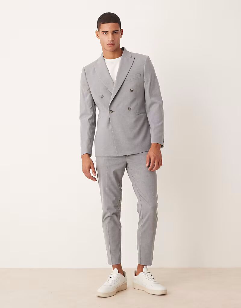 Двубортный узкий пиджак серого цвета Asos Design