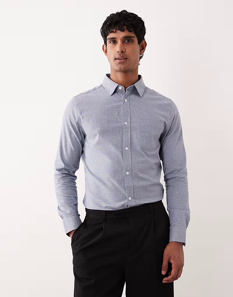 Рубашка в клетку синего цвета, которую легко гладить Asos Design