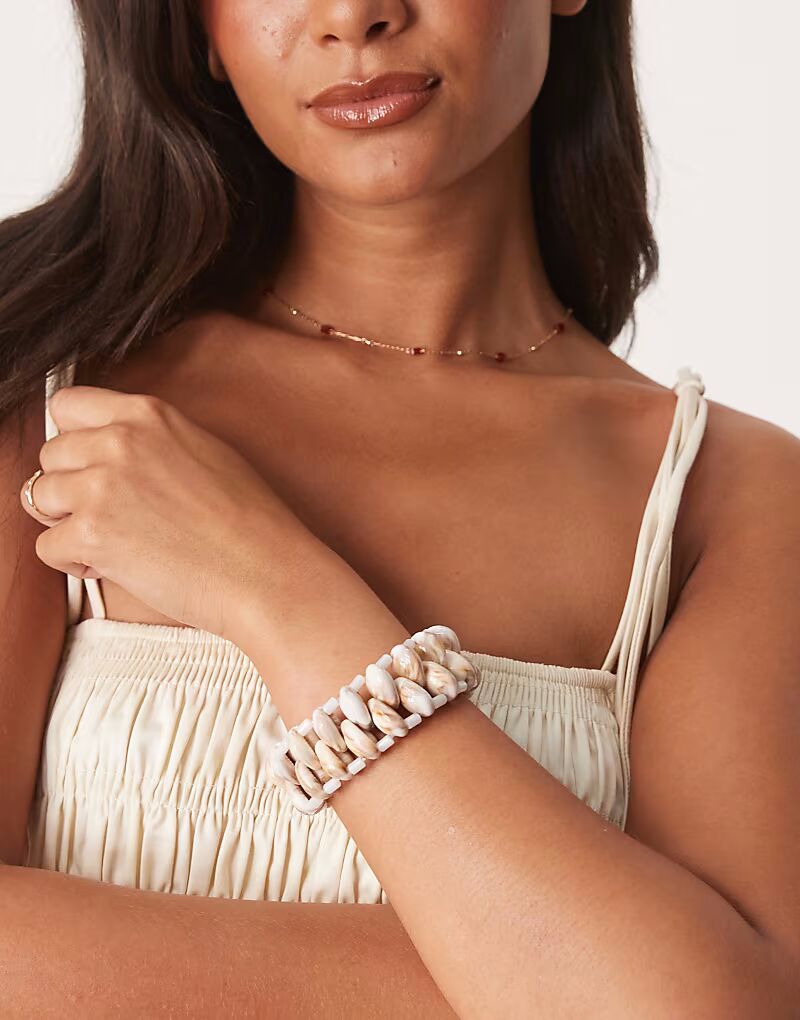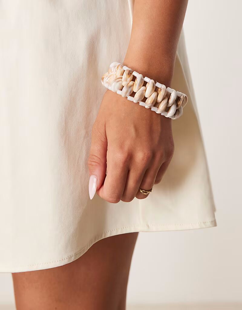 Эластичный браслет-манжета с искусственными ракушками Asos Design, белый