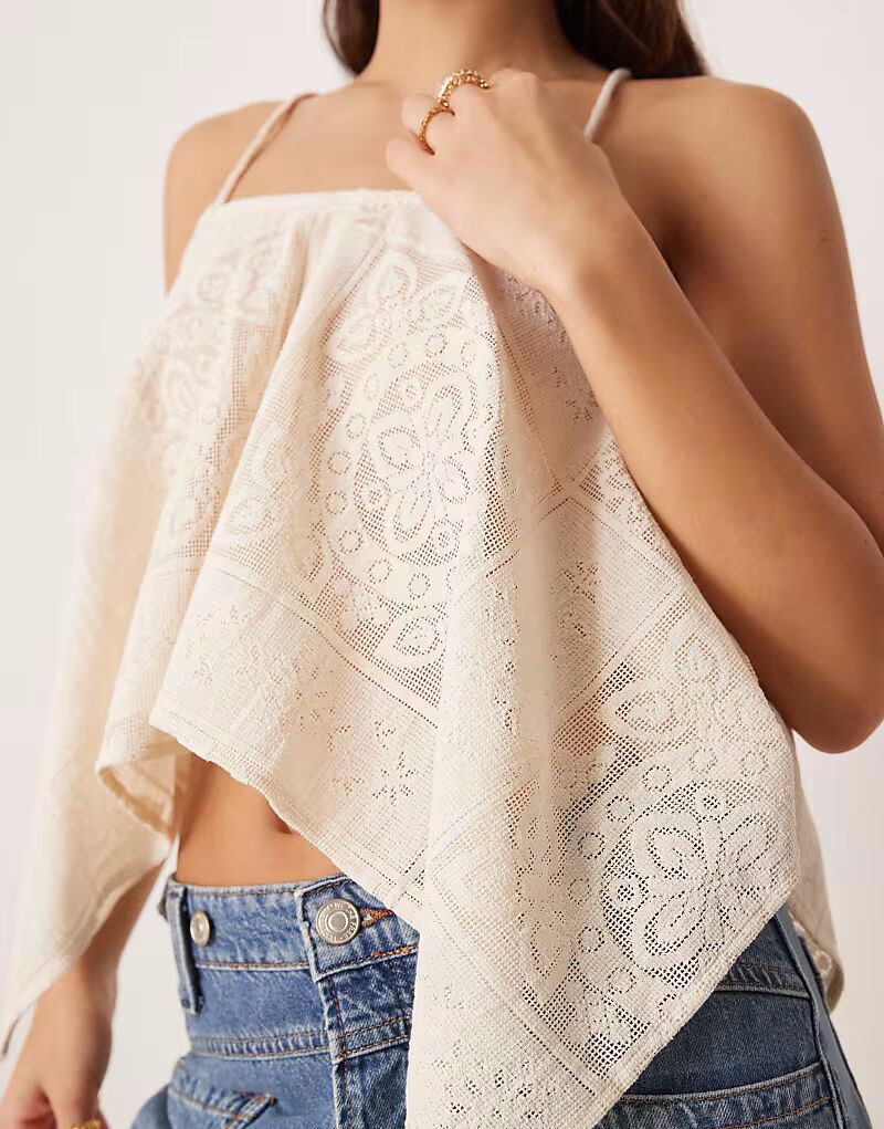 Топ-борцовка с вышивкой и драпировкой кремового цвета Asos Design