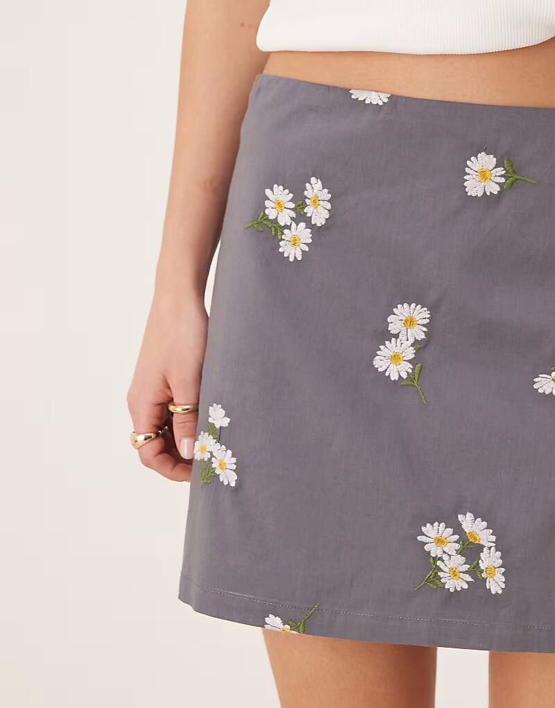 Мини-юбка с вышивкой серого цвета Asos Design