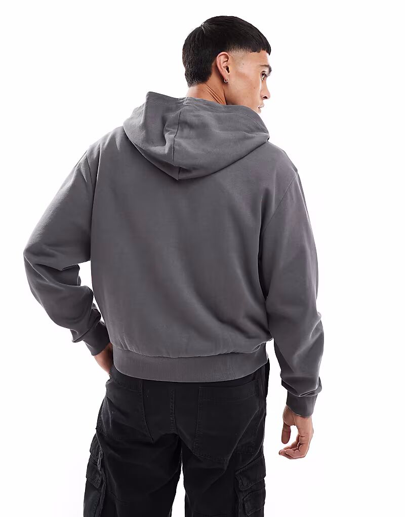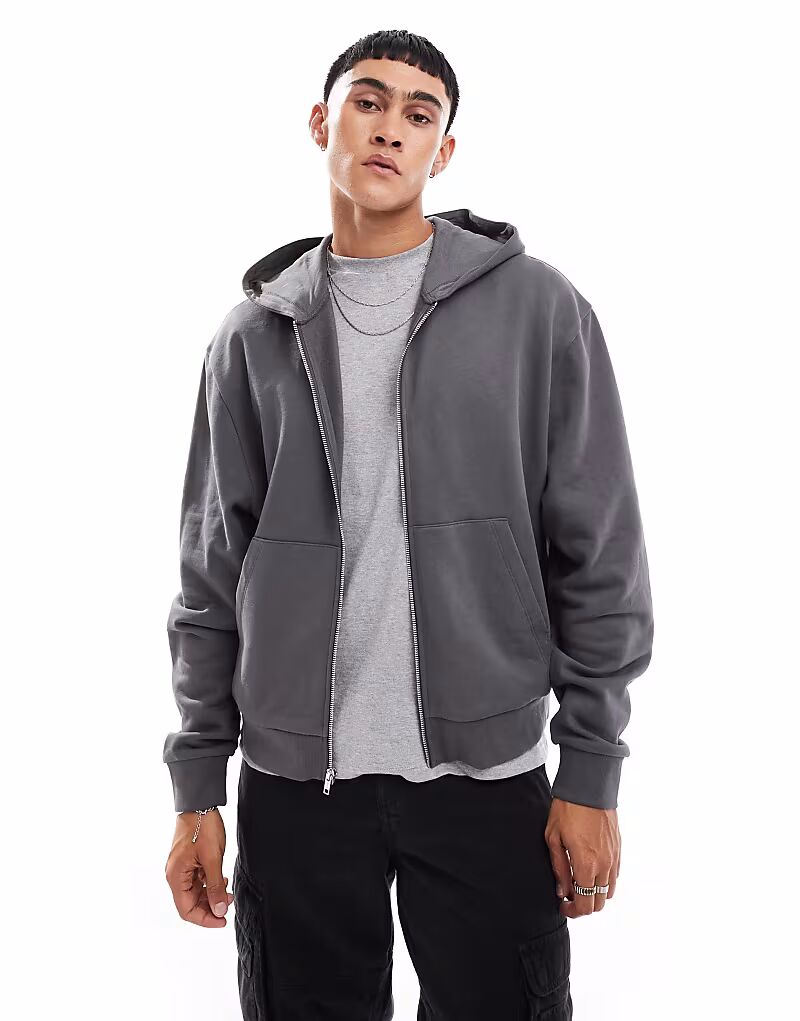 Свободная толстовка с капюшоном на молнии Essentials темно-серого цвета Asos Design