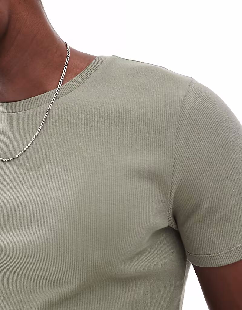 Футболка Essentials, облегающая, в зеленый рубчик Asos Design