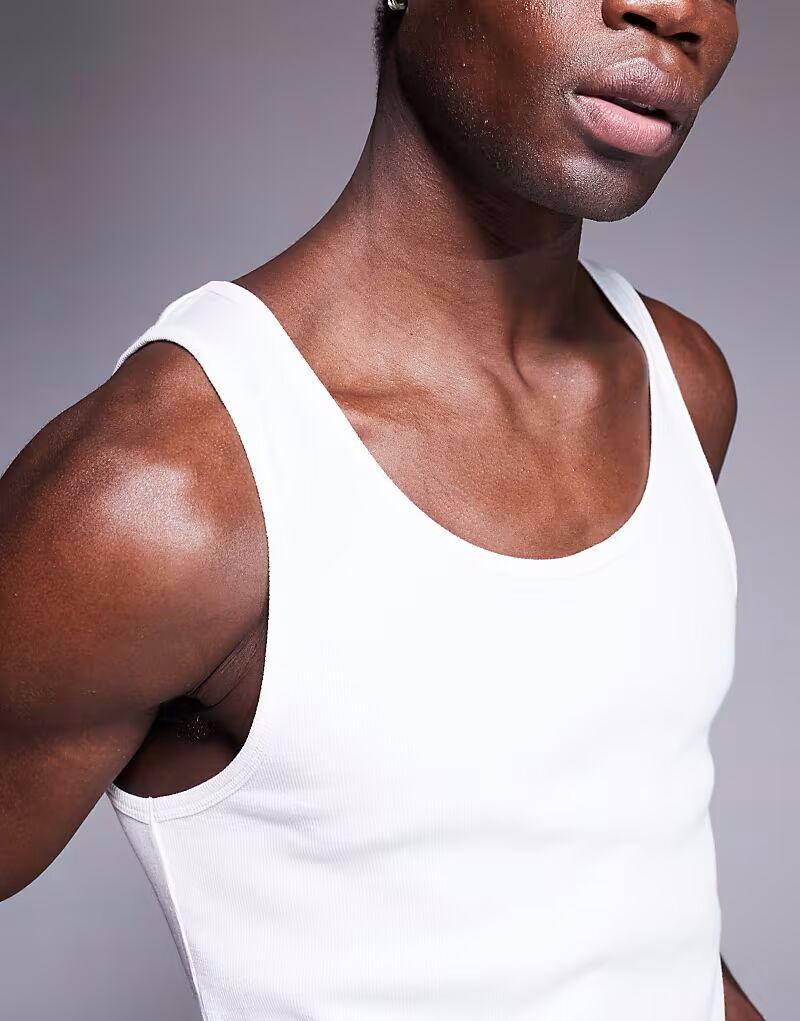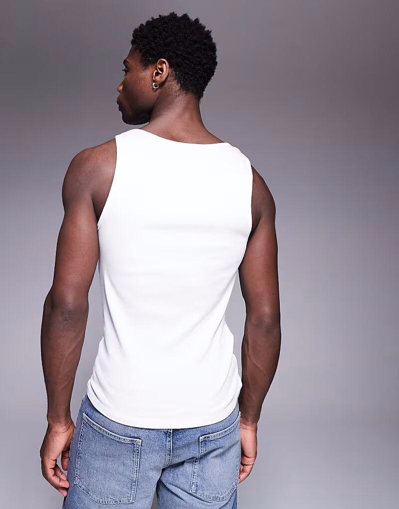 Майка Essentials, облегающий фигуру, в белый рубчик Asos Design