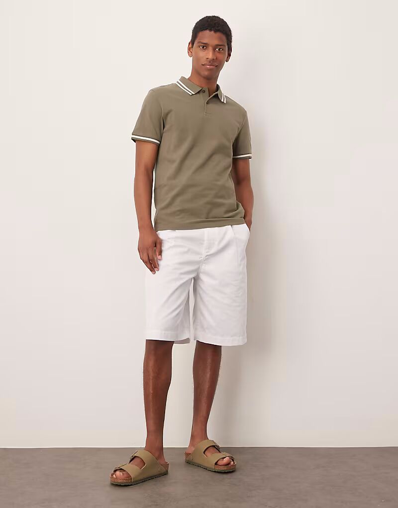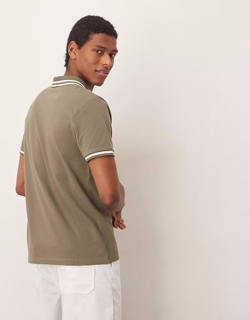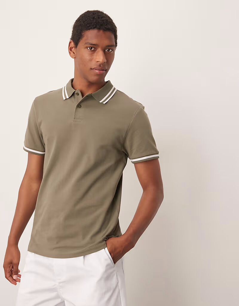 Поло Essentials с белой отделкой из пике цвета хаки Asos Design