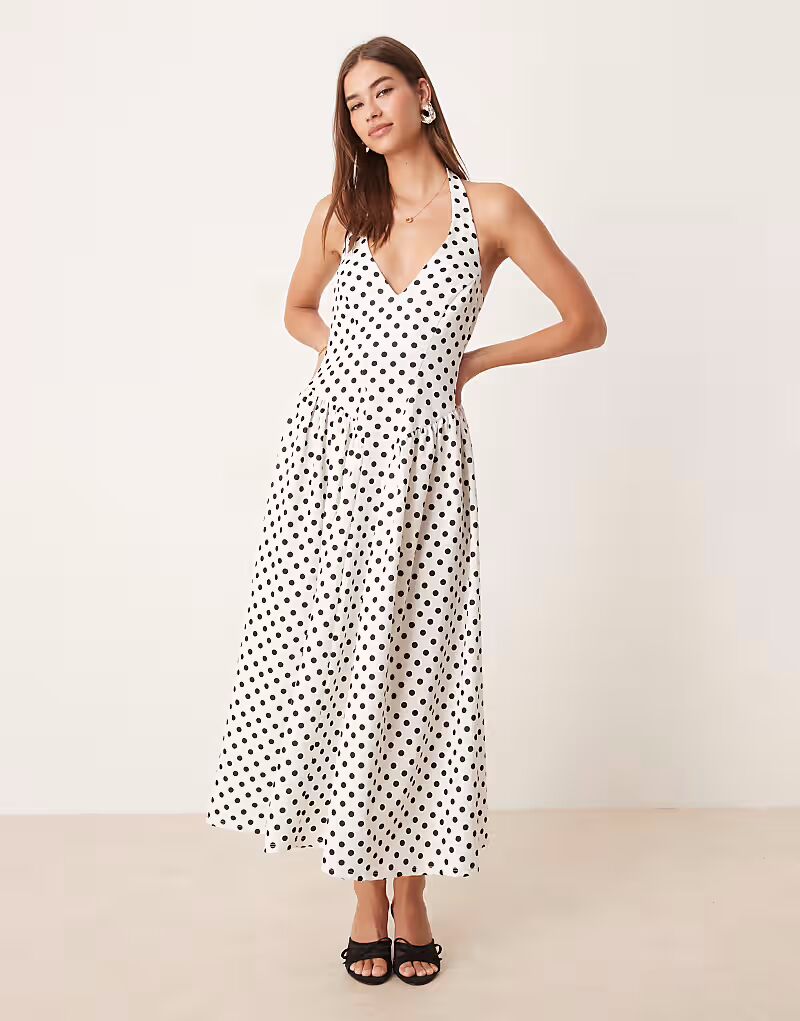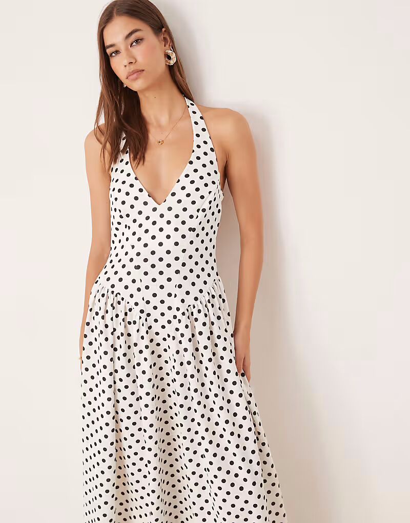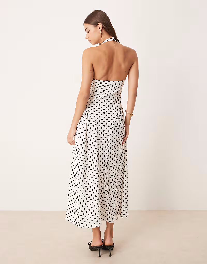 Платье миди с халтер-воротником и корсетом, с вырезом-годе в горошек Asos Design