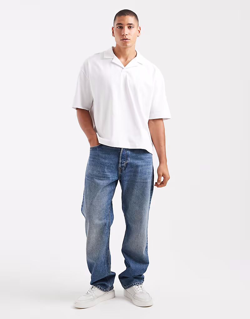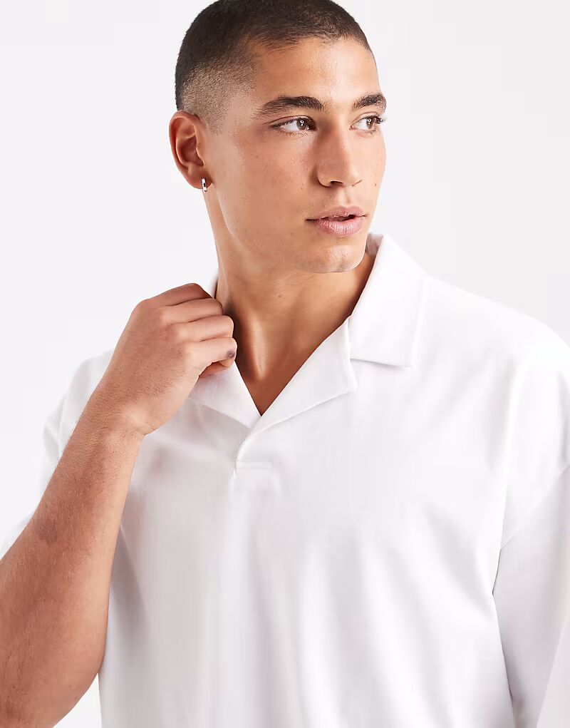 Плотная свободная рубашка-поло Revere белого цвета Asos Design