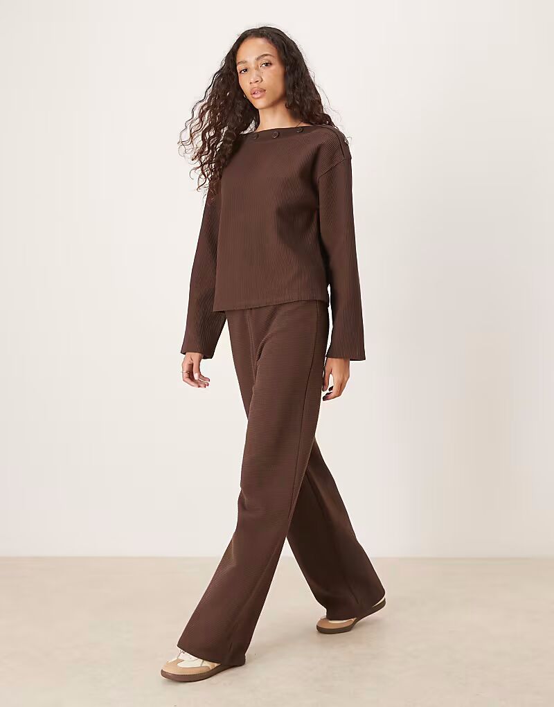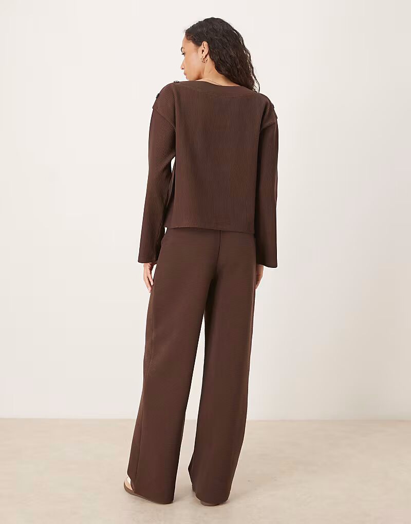 Широкие брюки из плотной рубчатой ткани шоколадного цвета Asos Design