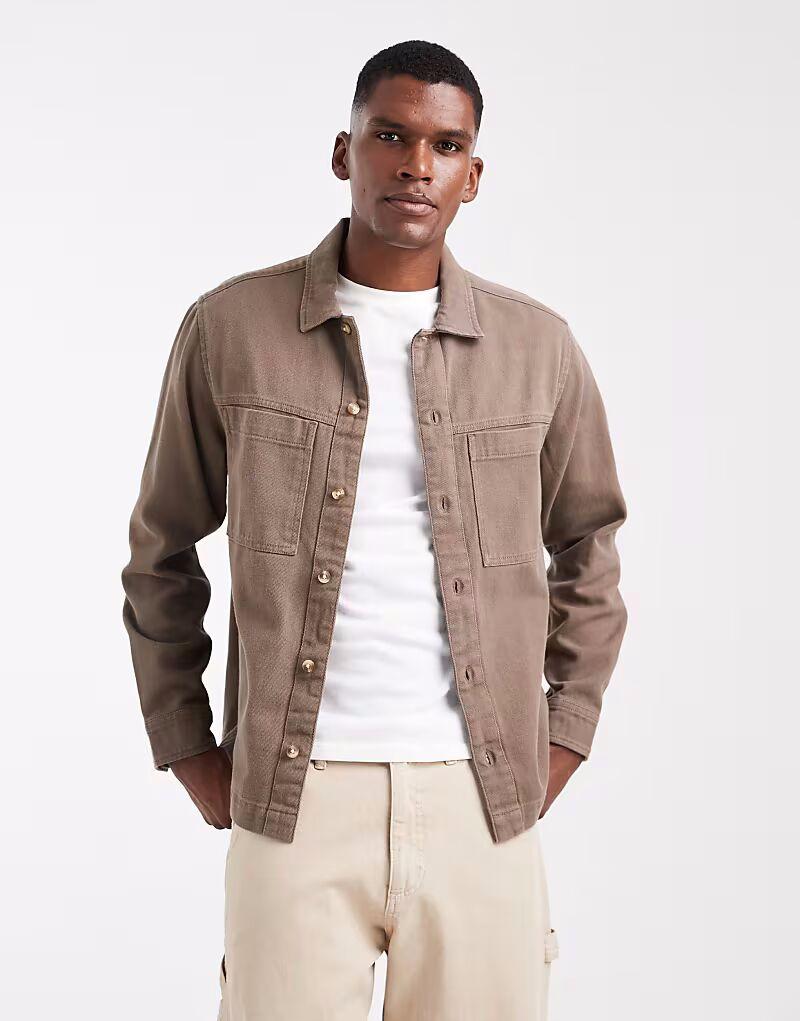 Рубашка из плотного твила коричневого цвета Asos Design