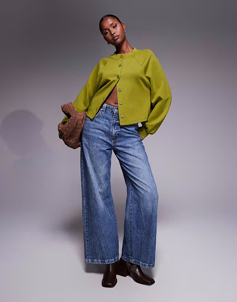 Кардиган интерлок оливково-зеленого цвета Asos Design