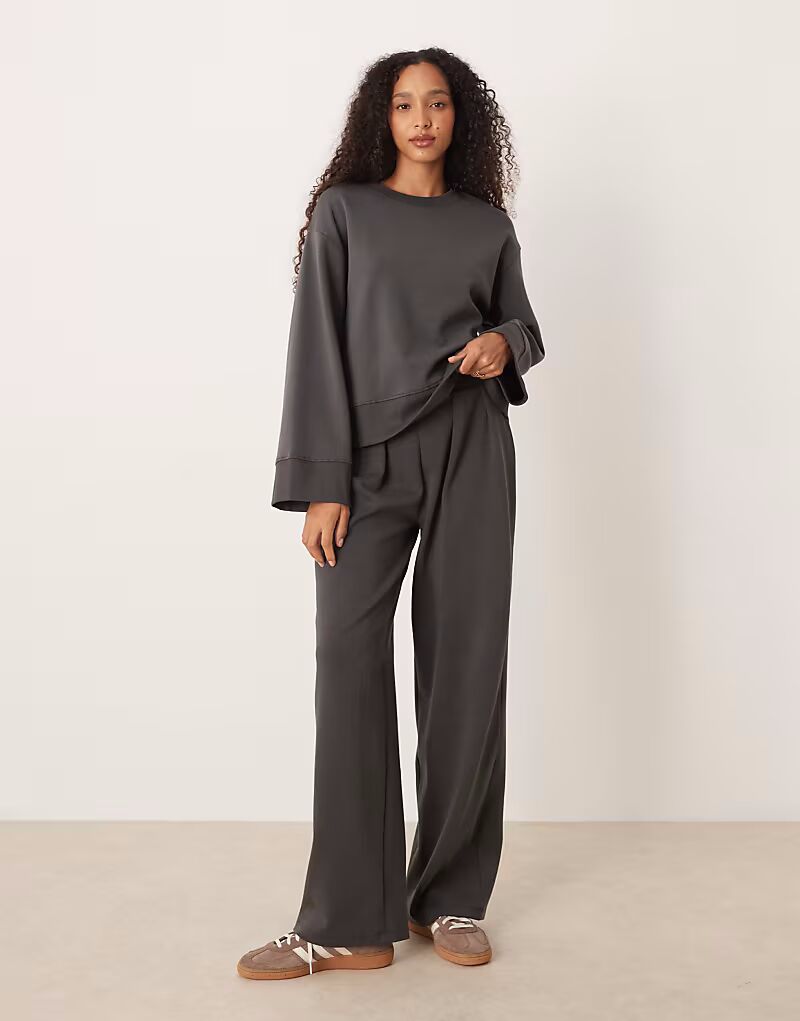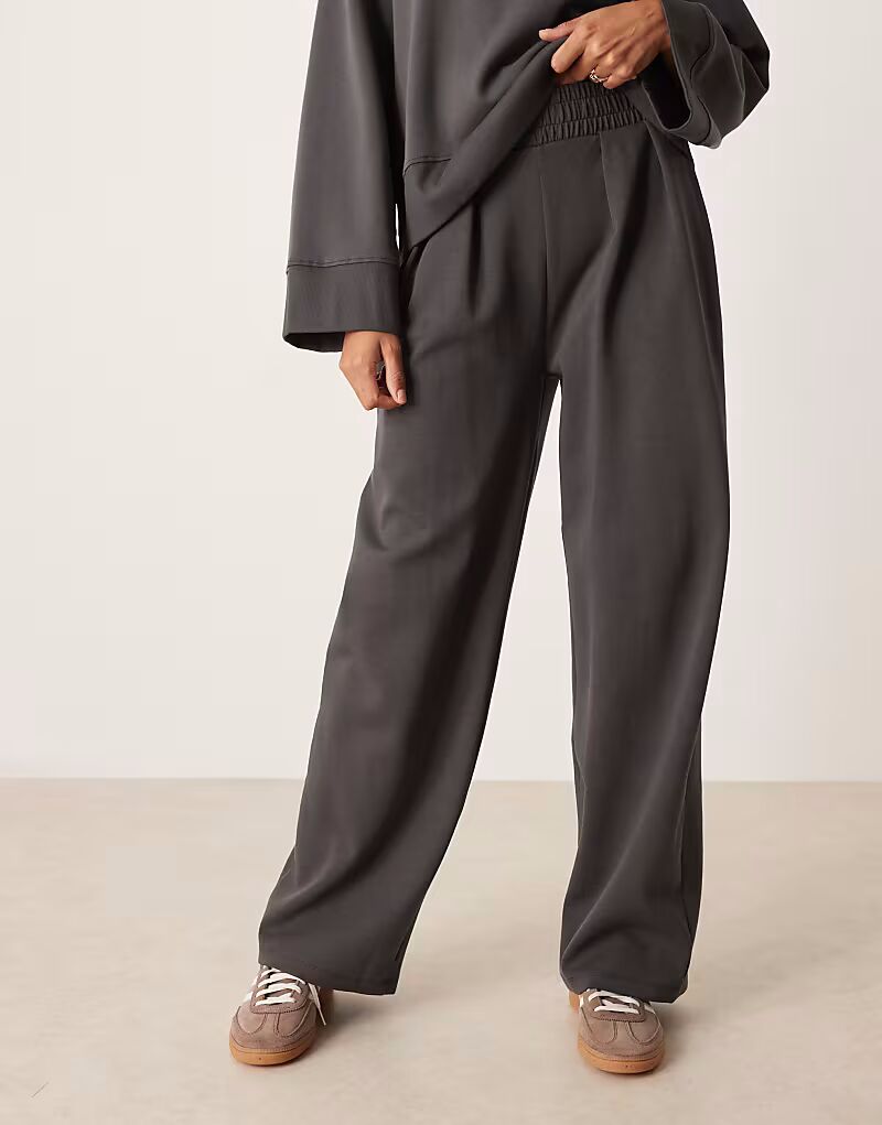 Широкие брюки из ткани интерлок темно-серого цвета Asos Design