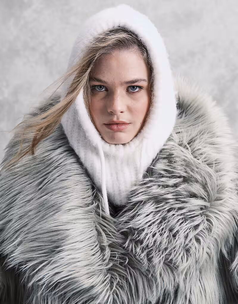 Вязаный капюшон белого цвета в зимнем цвете Asos Design