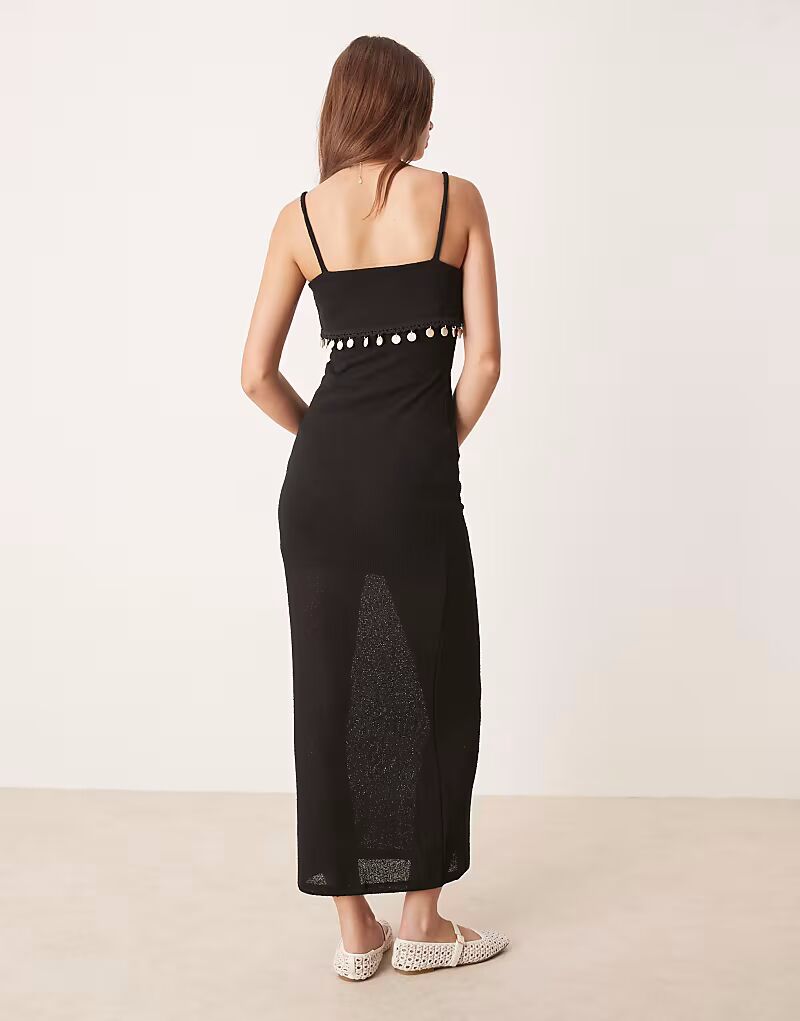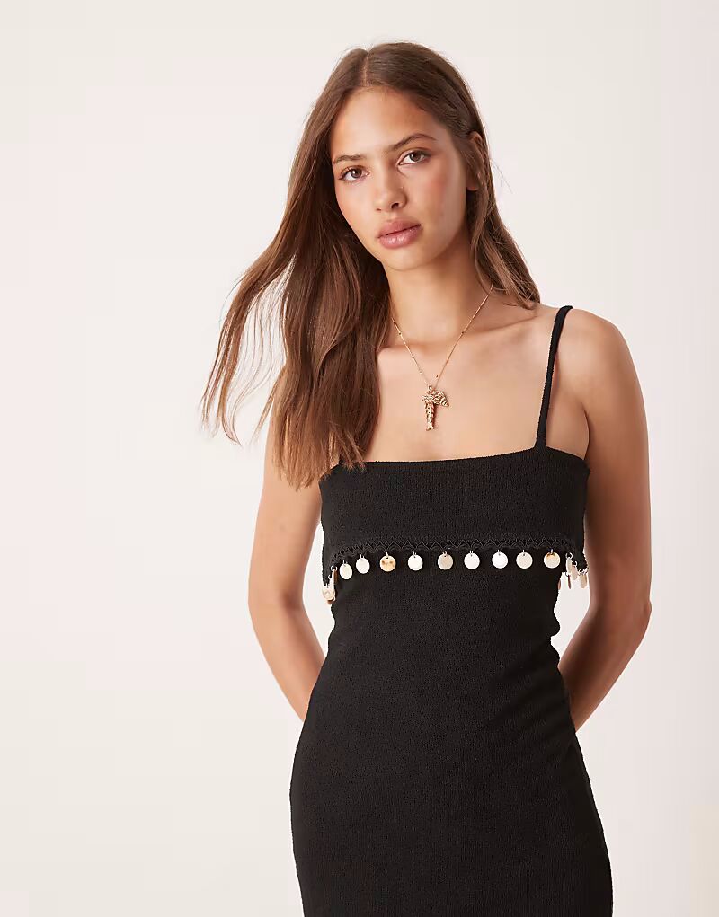 Платье макси с отделкой из ракушек черного цвета Asos Design