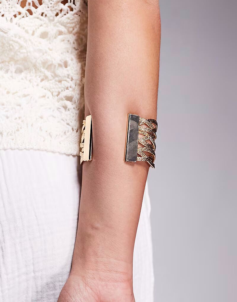 Браслет-манжета с крупной решеткой золотистого оттенка Asos Design 2 031₽