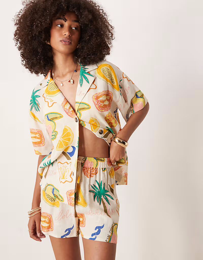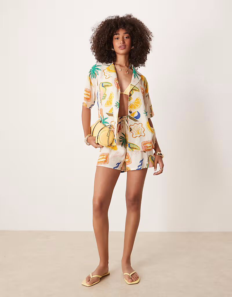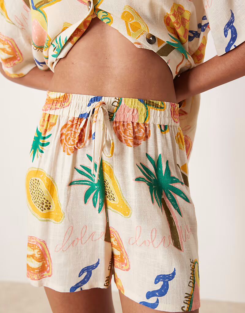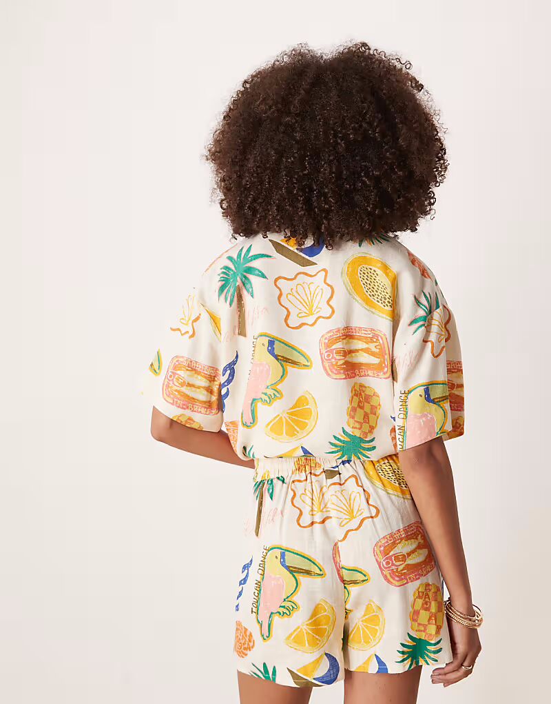 Льняные шорты с тропическим принтом Asos Design