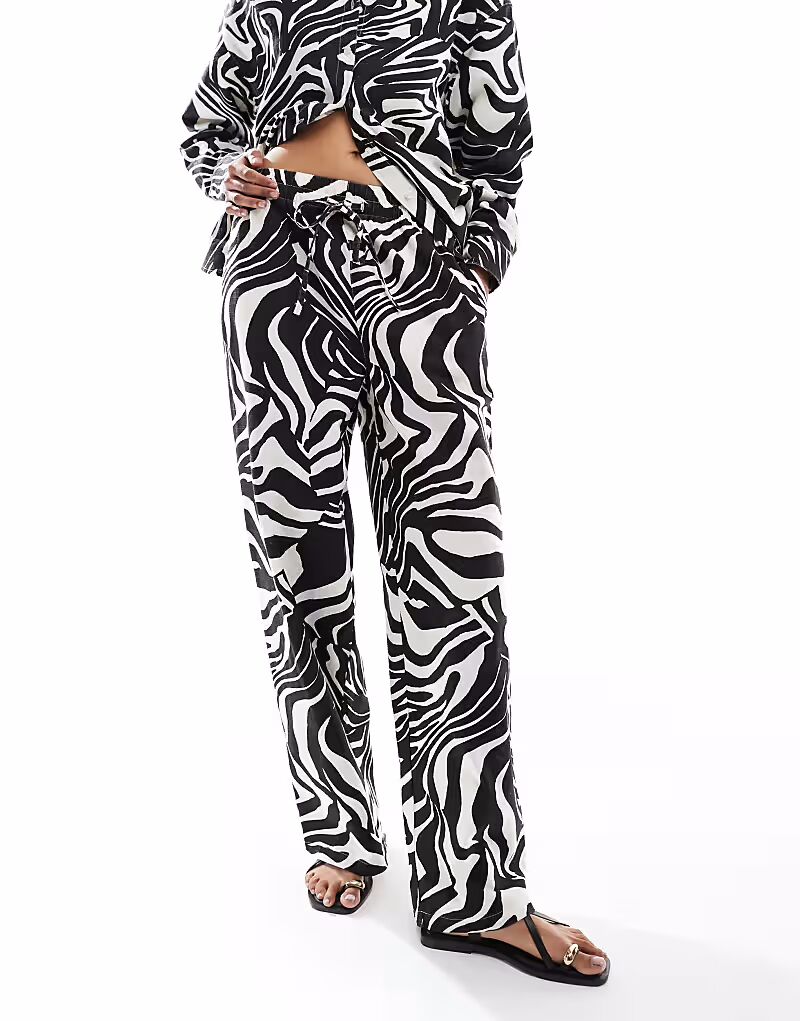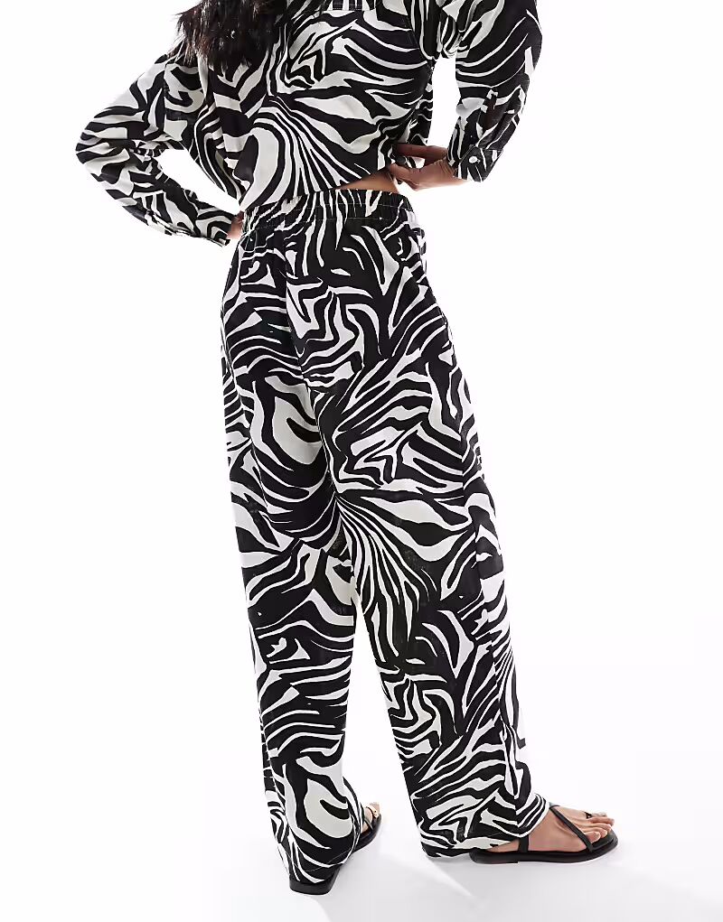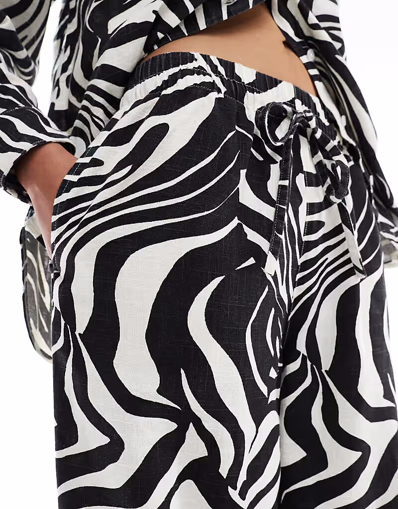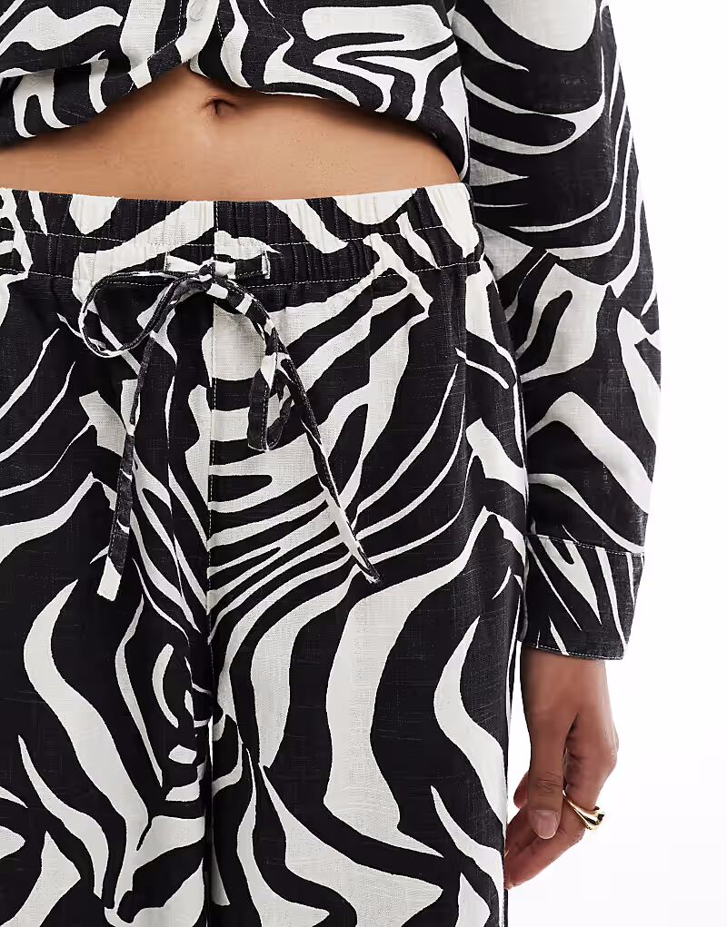 Брюки-комбинезон из льняного материала с принтом «зебра» Asos Design