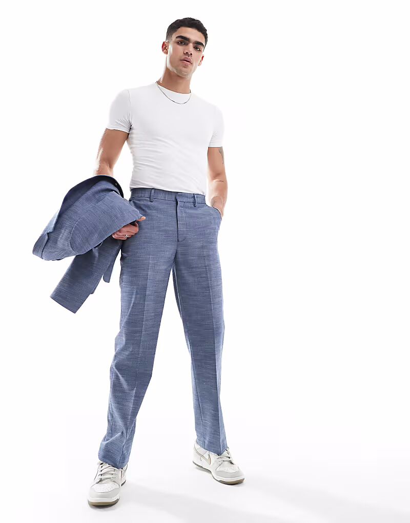 Прямые брюки из льняного материала синего цвета Asos Design 3 494₽