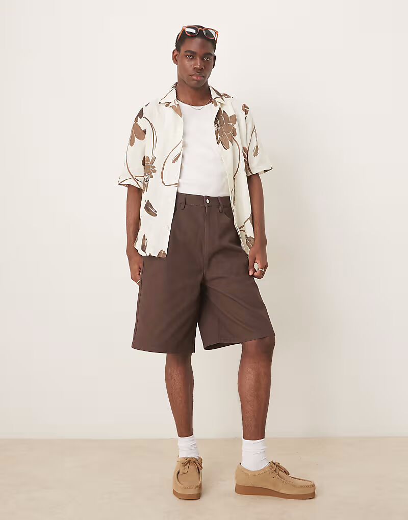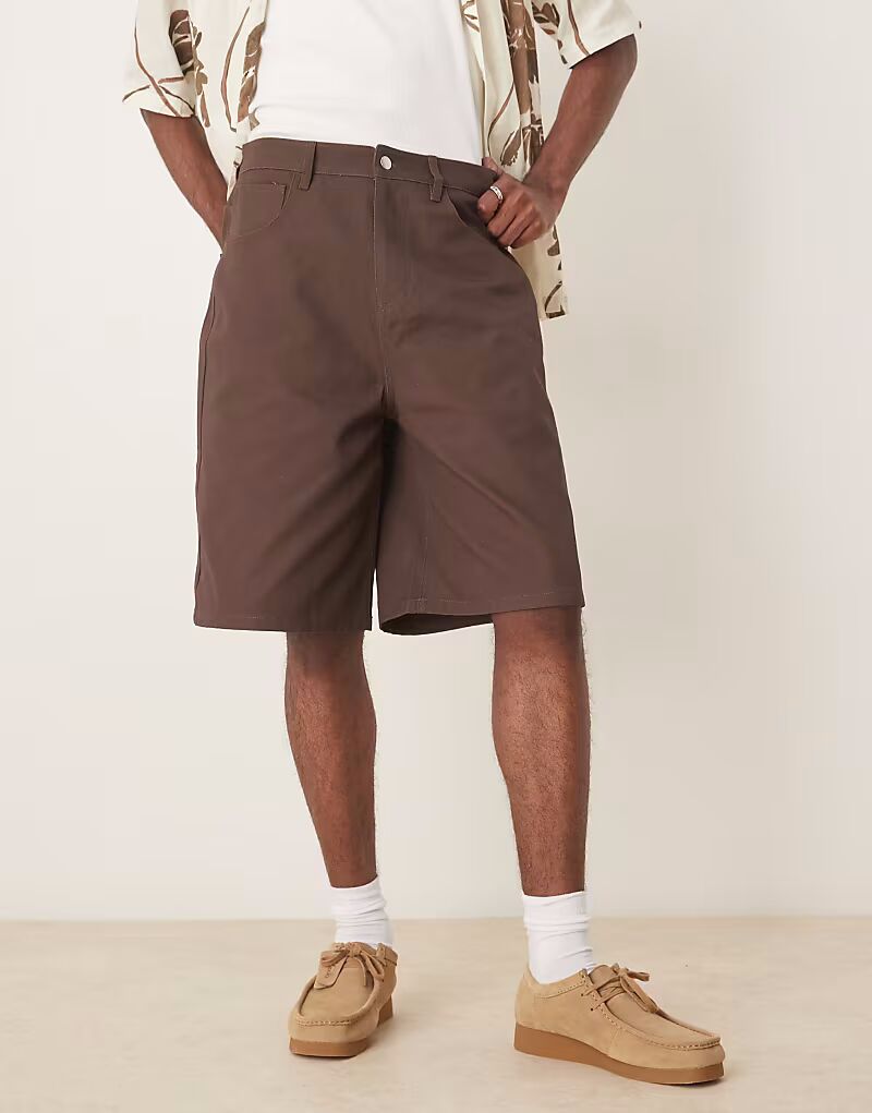 Длинные парусиновые шорты коричневого цвета Asos Design
