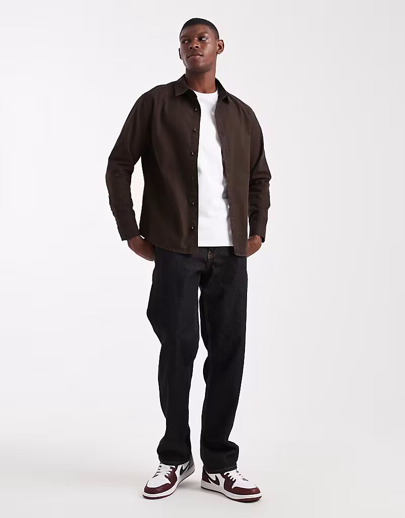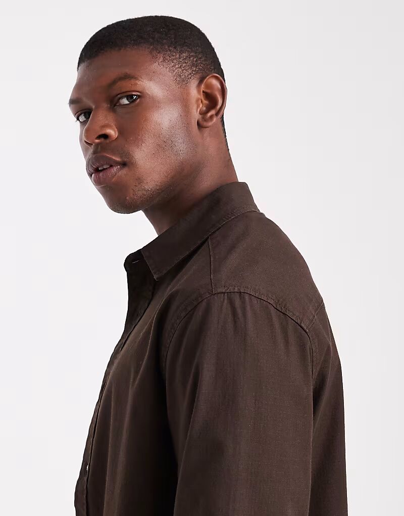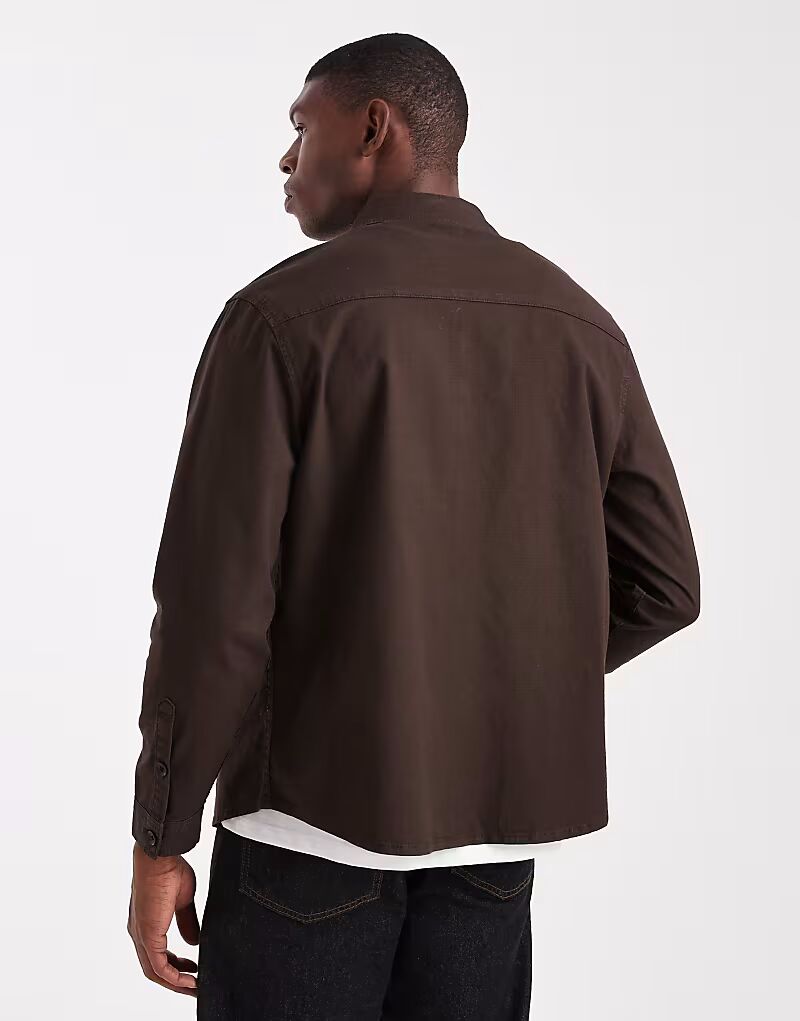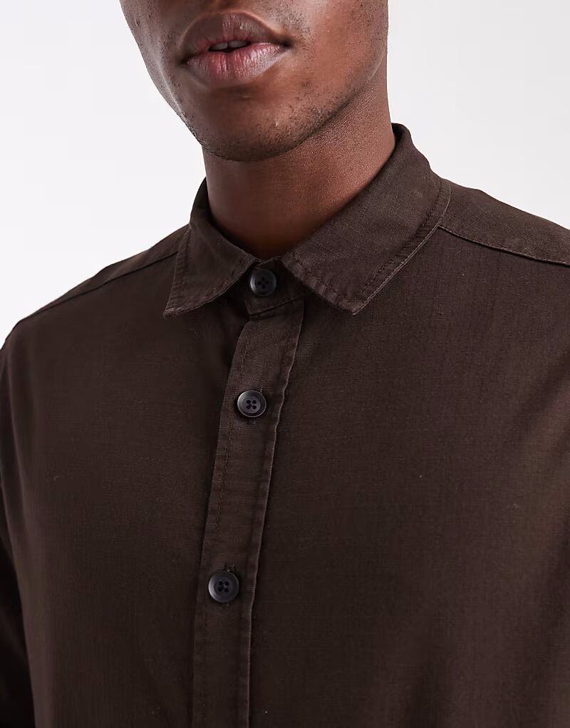 Рубашка с длинными рукавами из коричневой ткани рипстоп Asos Design