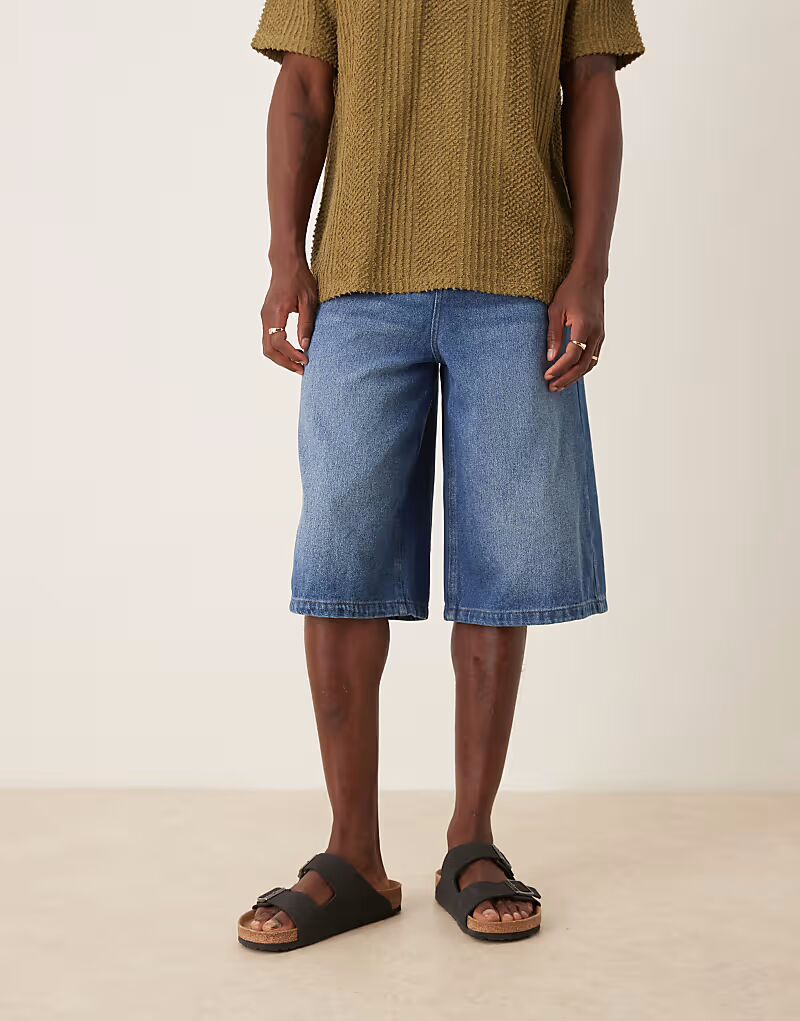 Удлинённые джинсовые шорты, цвет средне-синий Asos Design