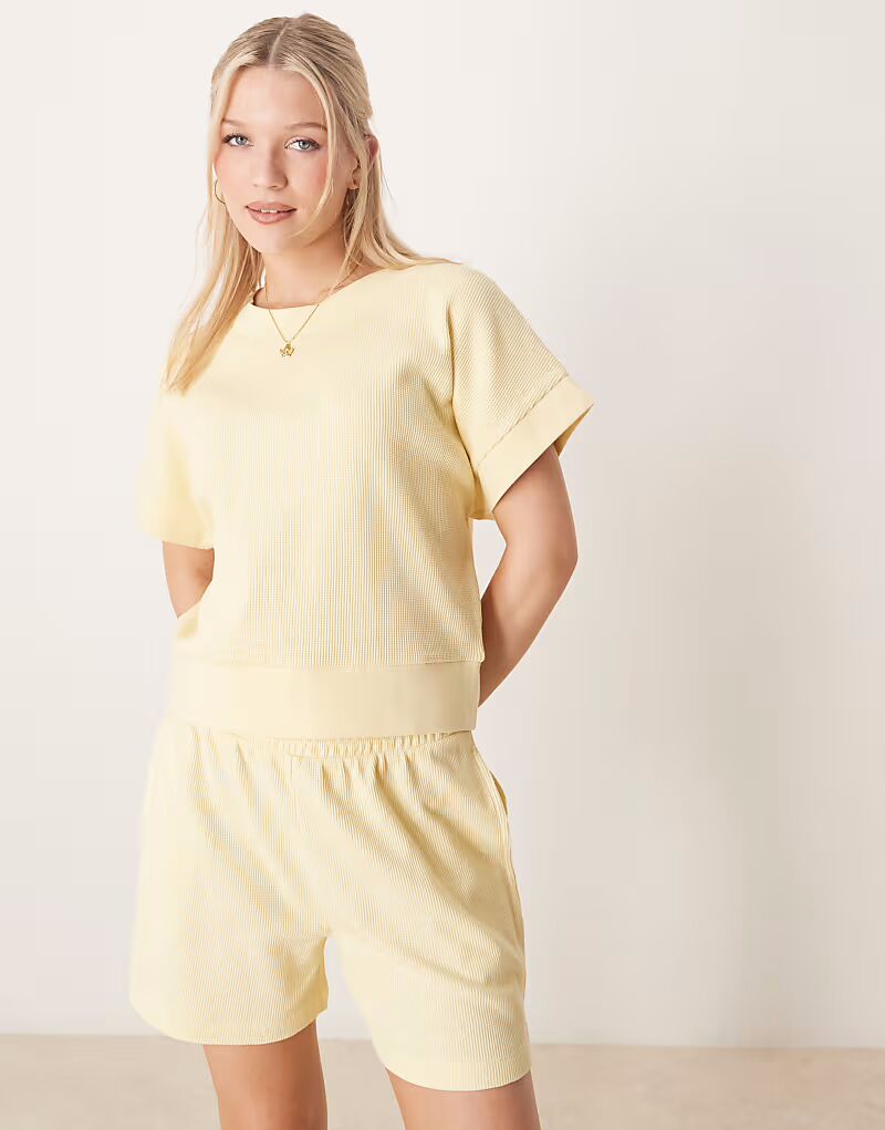 Удлиненные вафельные шорты лимонного цвета Asos Design