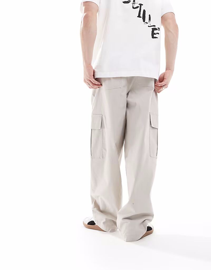 Свободные брюки-карго с эластичной талией серого цвета Asos Design