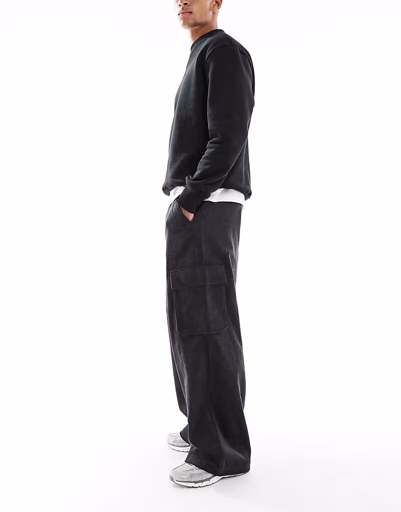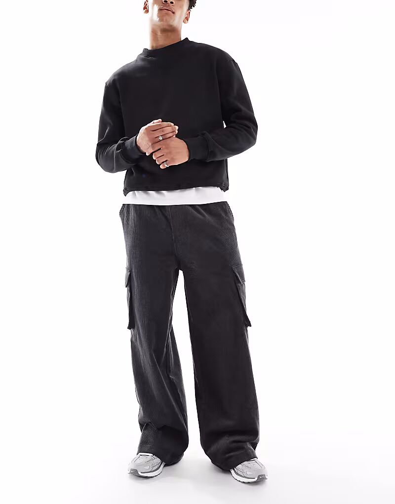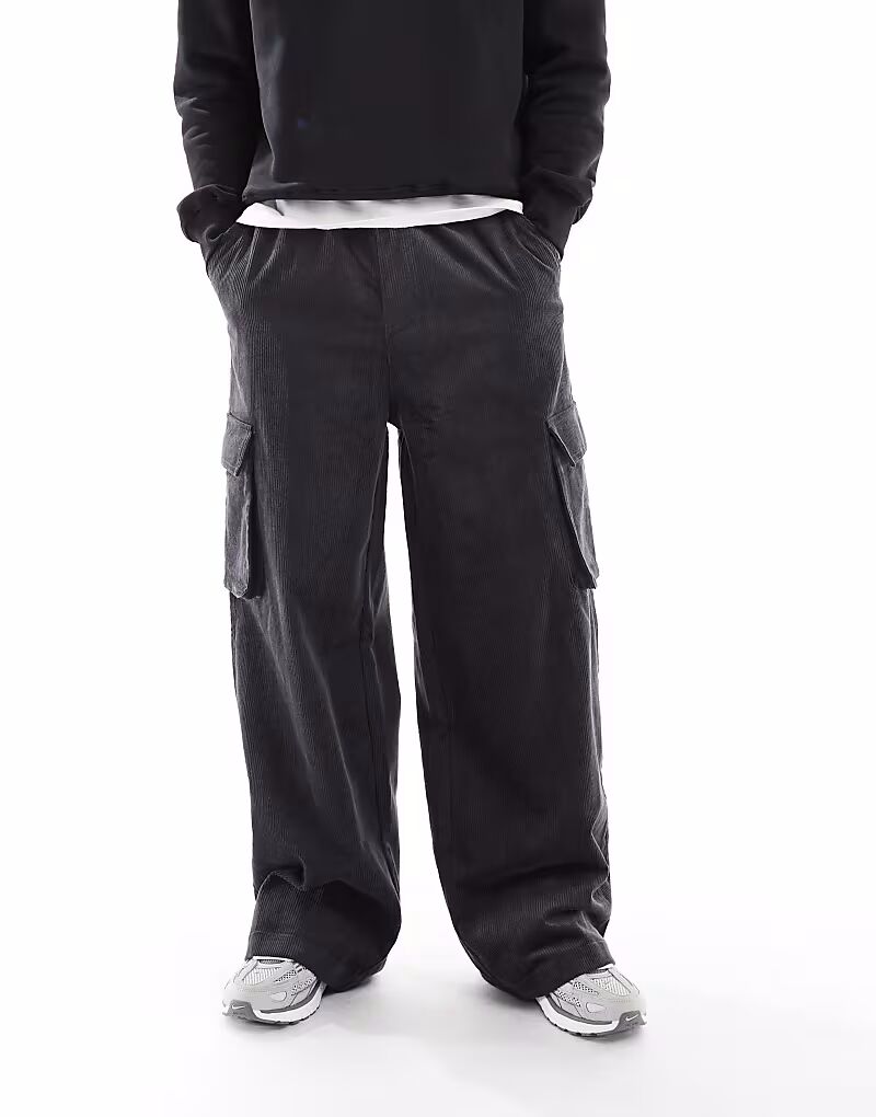 Свободные вельветовые брюки-карго темно-серого цвета Asos Design