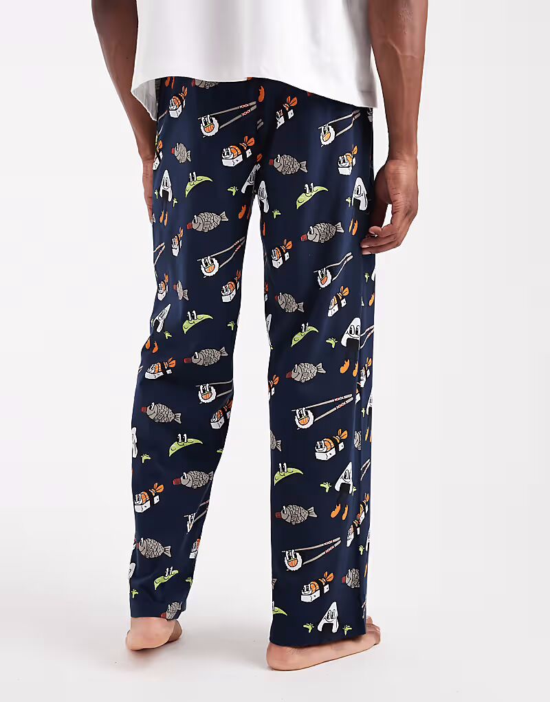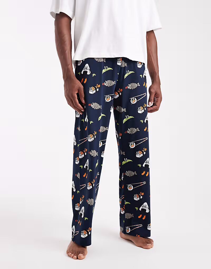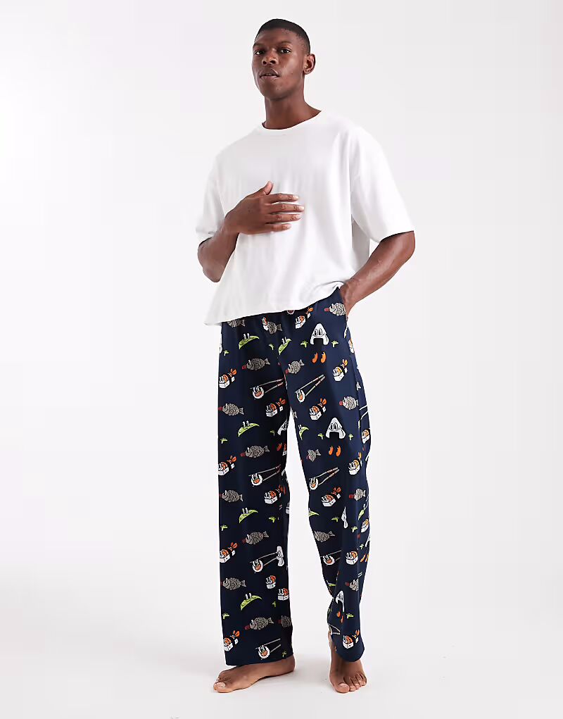 Домашние брюки с принтом суши в темно-синем цвете Asos Design