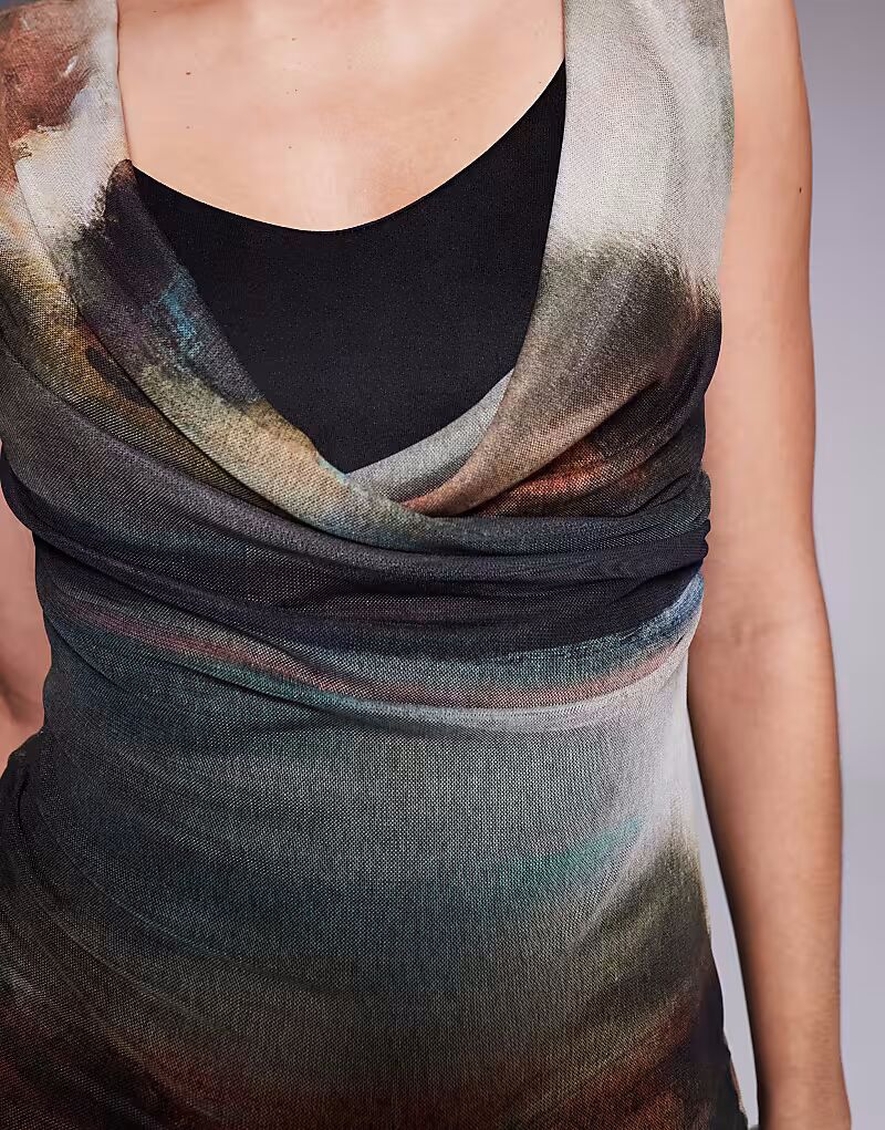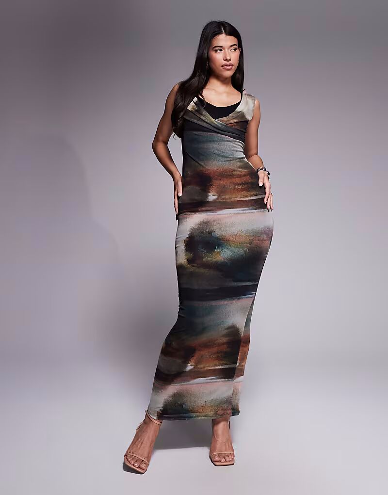 Платье макси из сетки с бюстгальтером и размытым принтом Asos Design