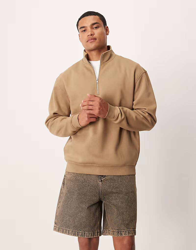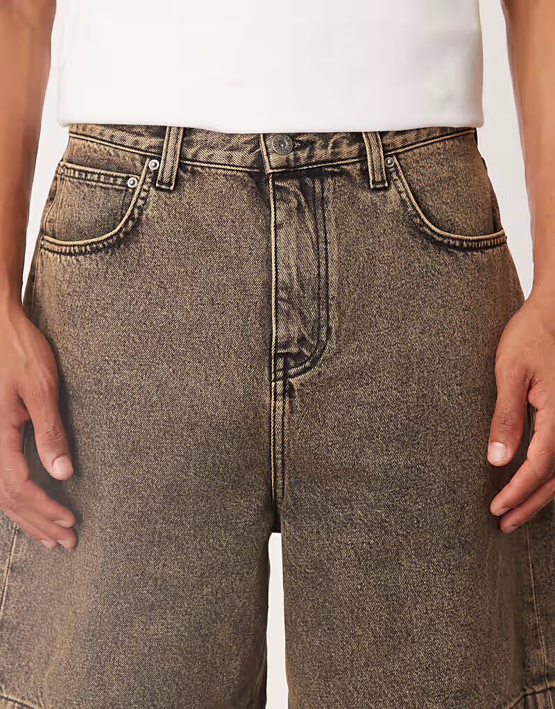 Джинсовые шорты средней длины коричневого цвета Asos Design