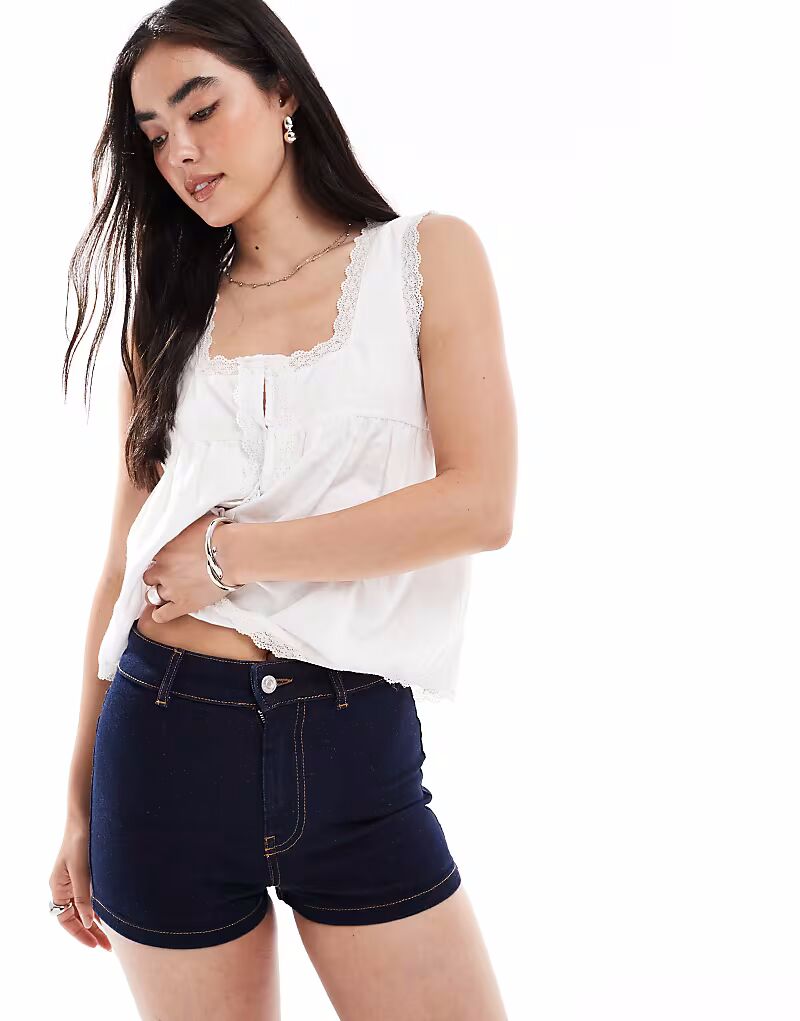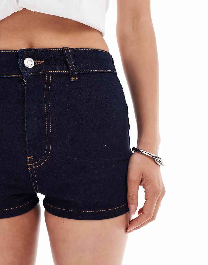 Микрошорты из эластичного денима средней посадки цвета индиго Asos Design