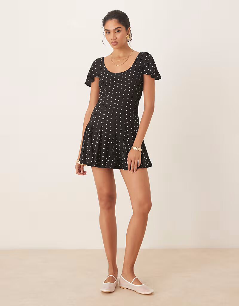Мини-платье с подолом годе в горошек Asos Design
