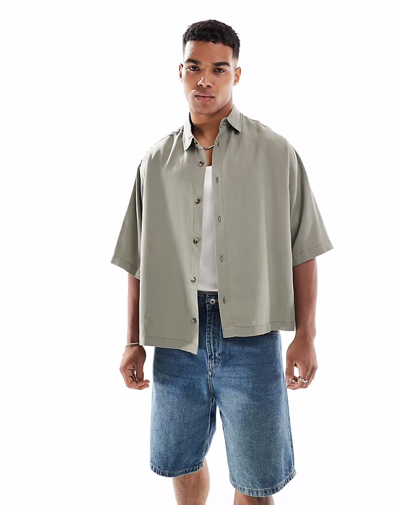 Рубашка свободного кроя премиум-класса цвета хаки Asos Design