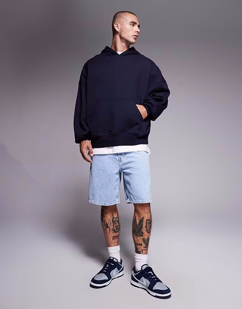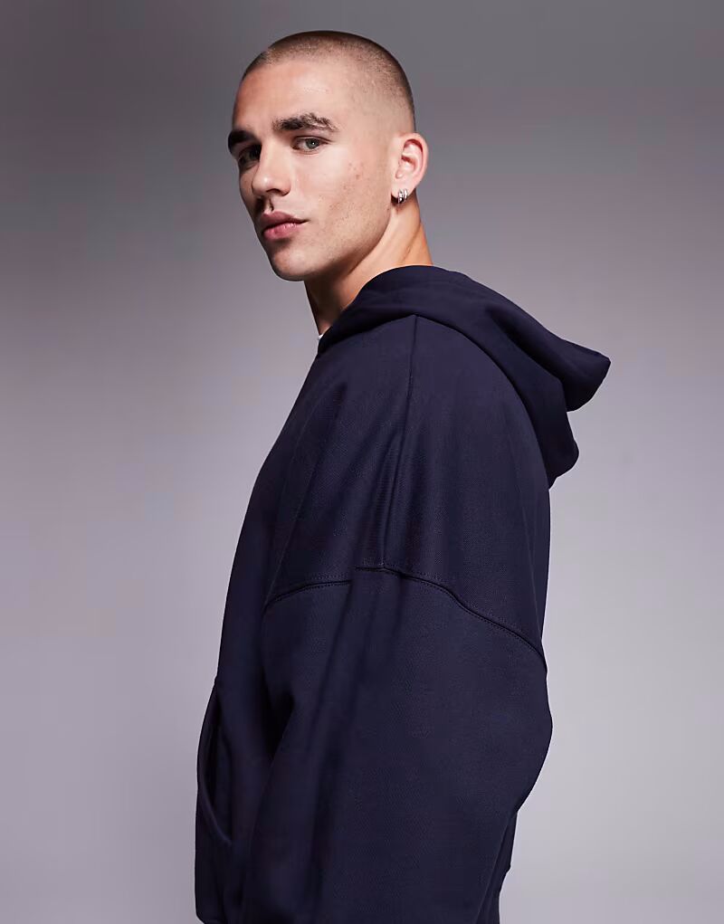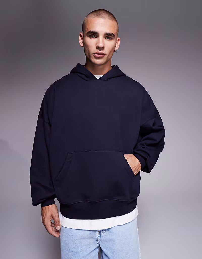 Толстовка премиум-класса из плотной ткани оверсайз темно-синего цвета плотностью 400 г/м² Asos Design