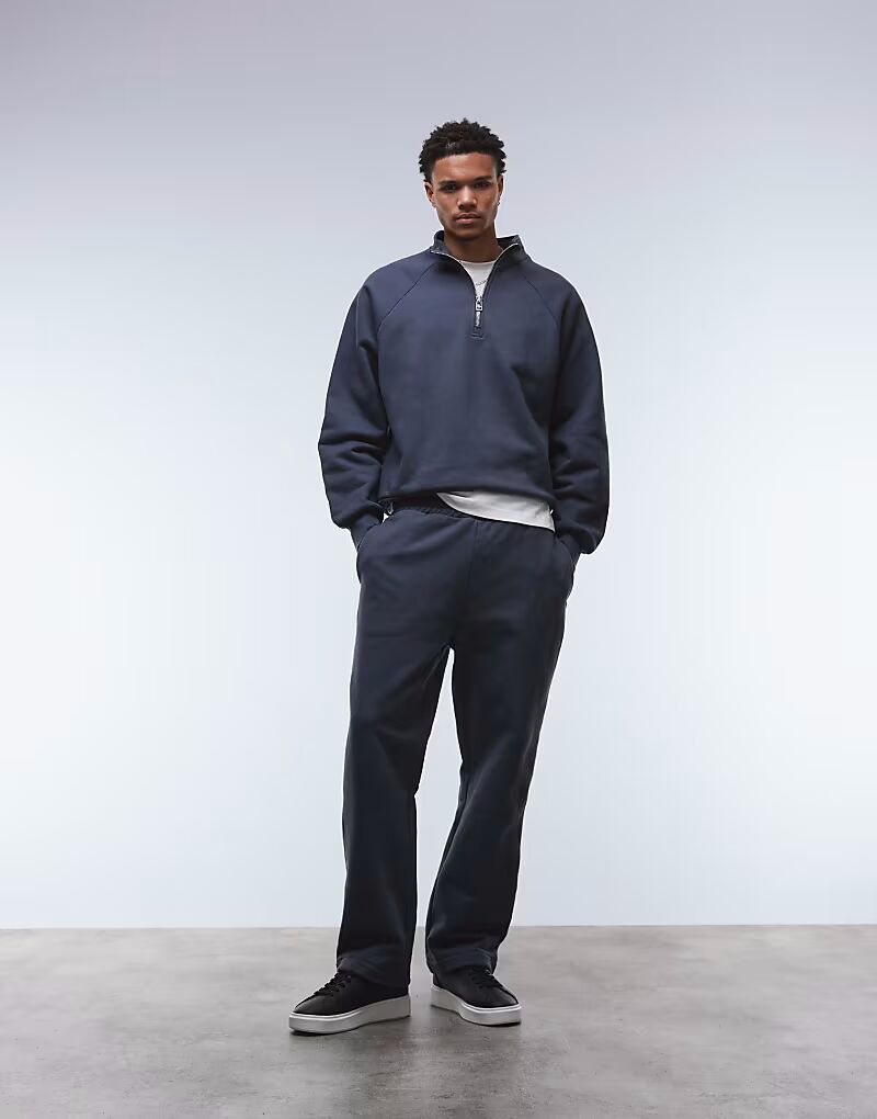 Премиальные плотные свободные спортивные брюки из темно-синего материала плотностью 650 г/м² Asos Design