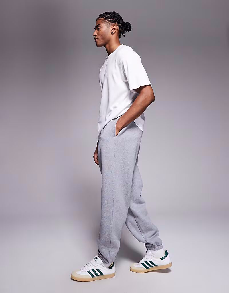 Премиальные плотные свободные джоггеры плотностью 400 г/м² серого меланжевого цвета Asos Design