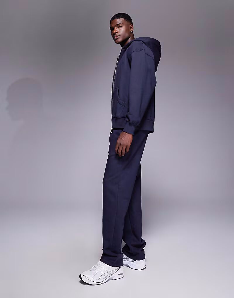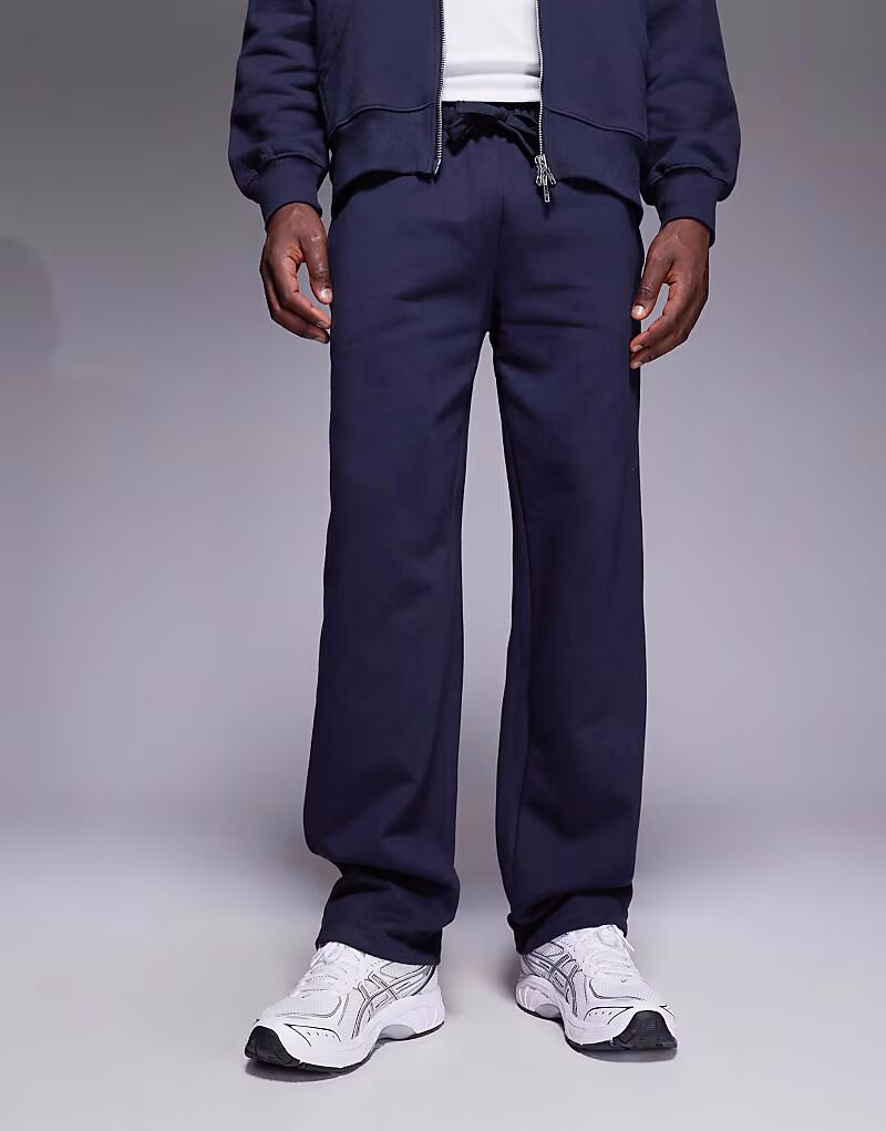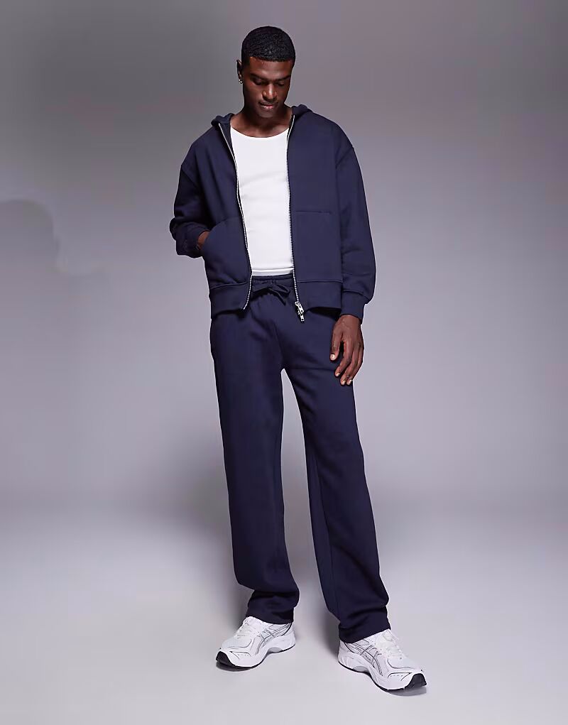 Премиальные плотные прямые брюки-джоггеры темно-синего цвета плотностью 400 г/м² Asos Design