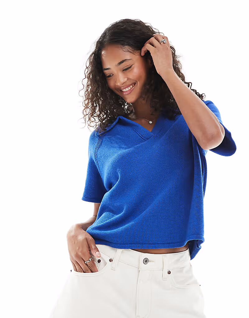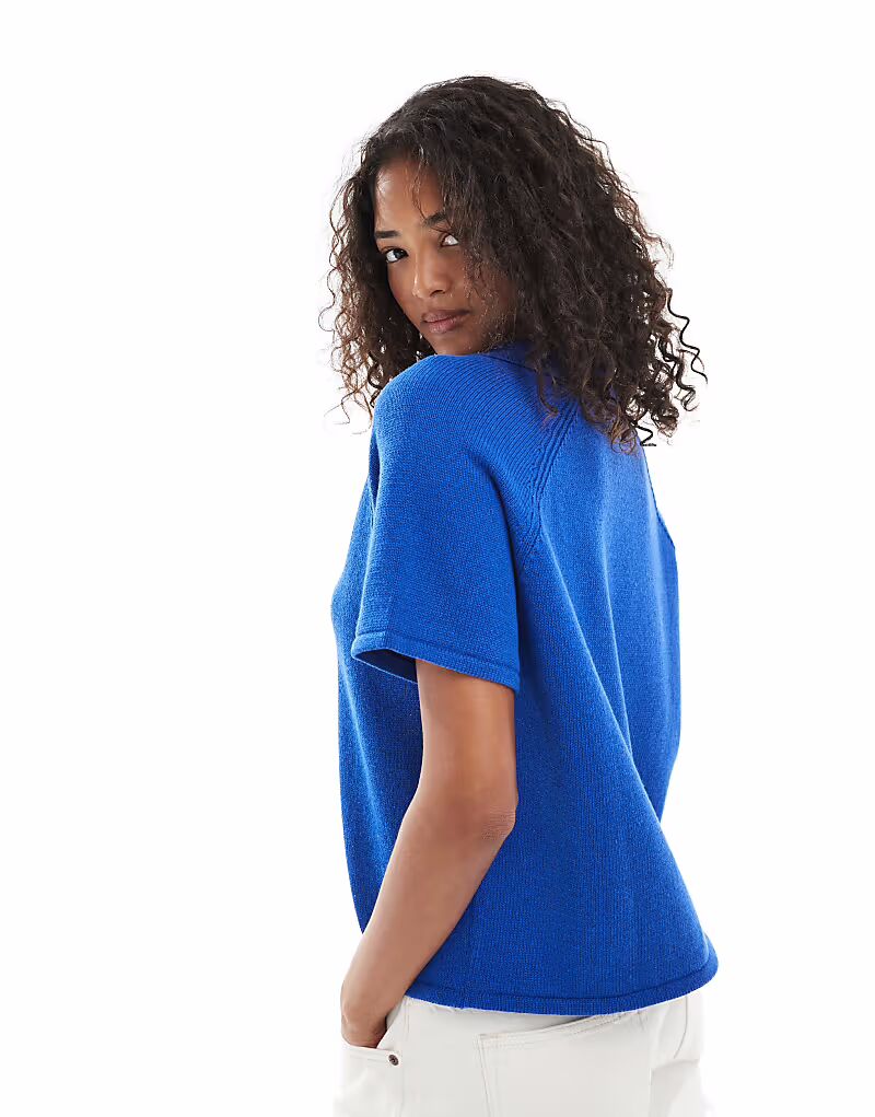 Вязаный топ-поло реглан синего цвета Asos Design 4 502₽