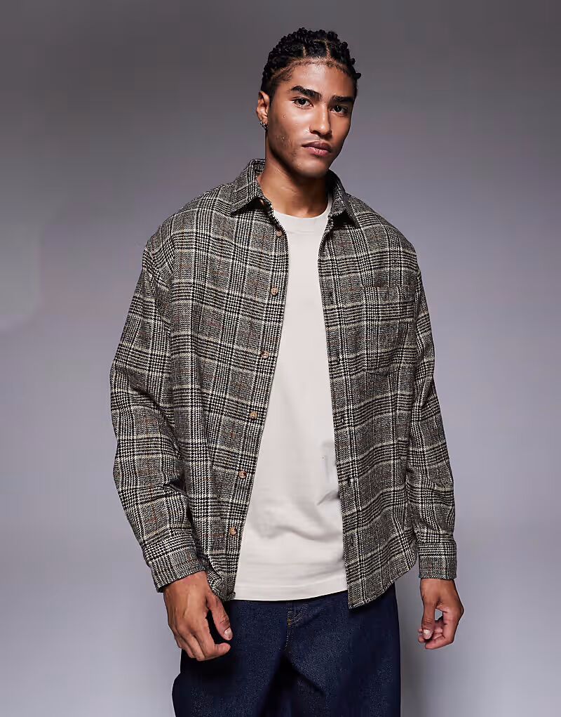 Рубашка из фланели в обычную клетку коричневого цвета Asos Design