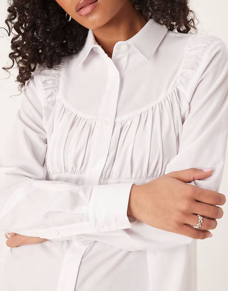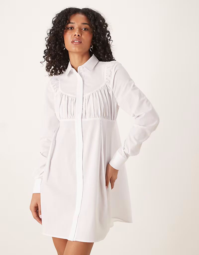 Платье-рубашка мини с отделкой на груди белого цвета Asos Design