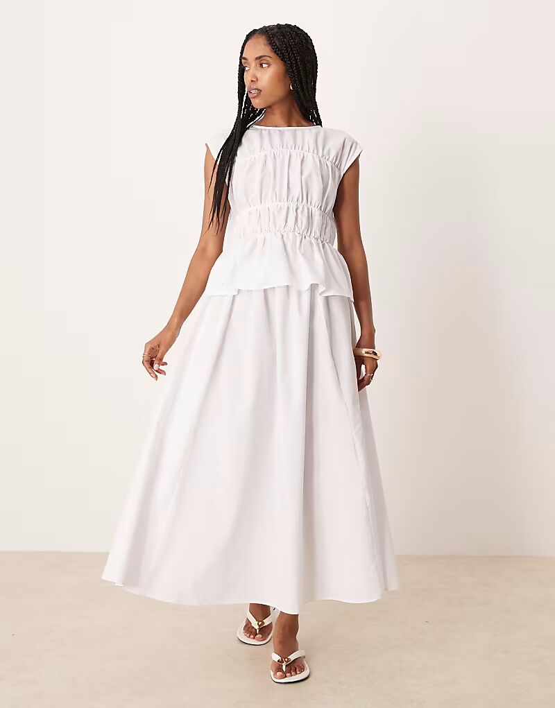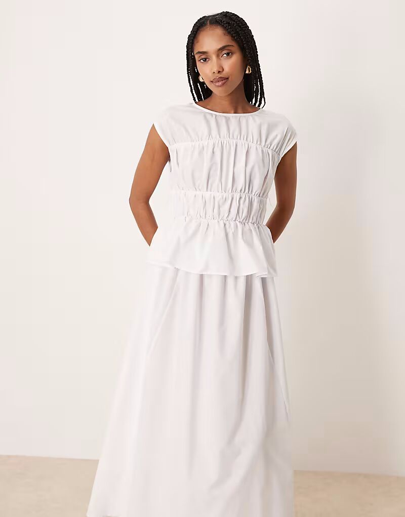 Платье макси со сборками и вставками белого цвета Asos Design 4 440₽