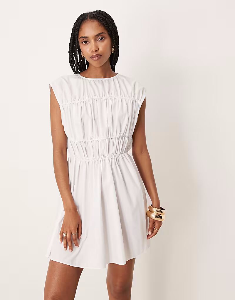 Мини-платье со сборками и вставками белого цвета Asos Design