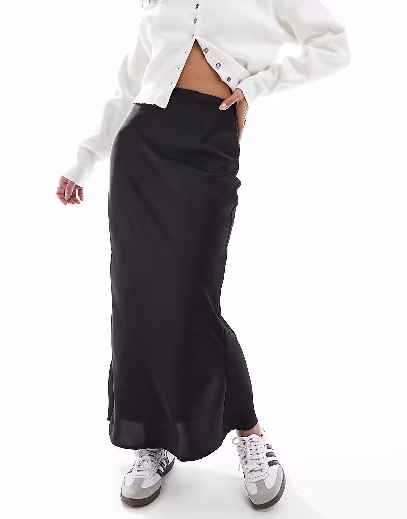Юбка миди из атласа черного цвета Asos Design