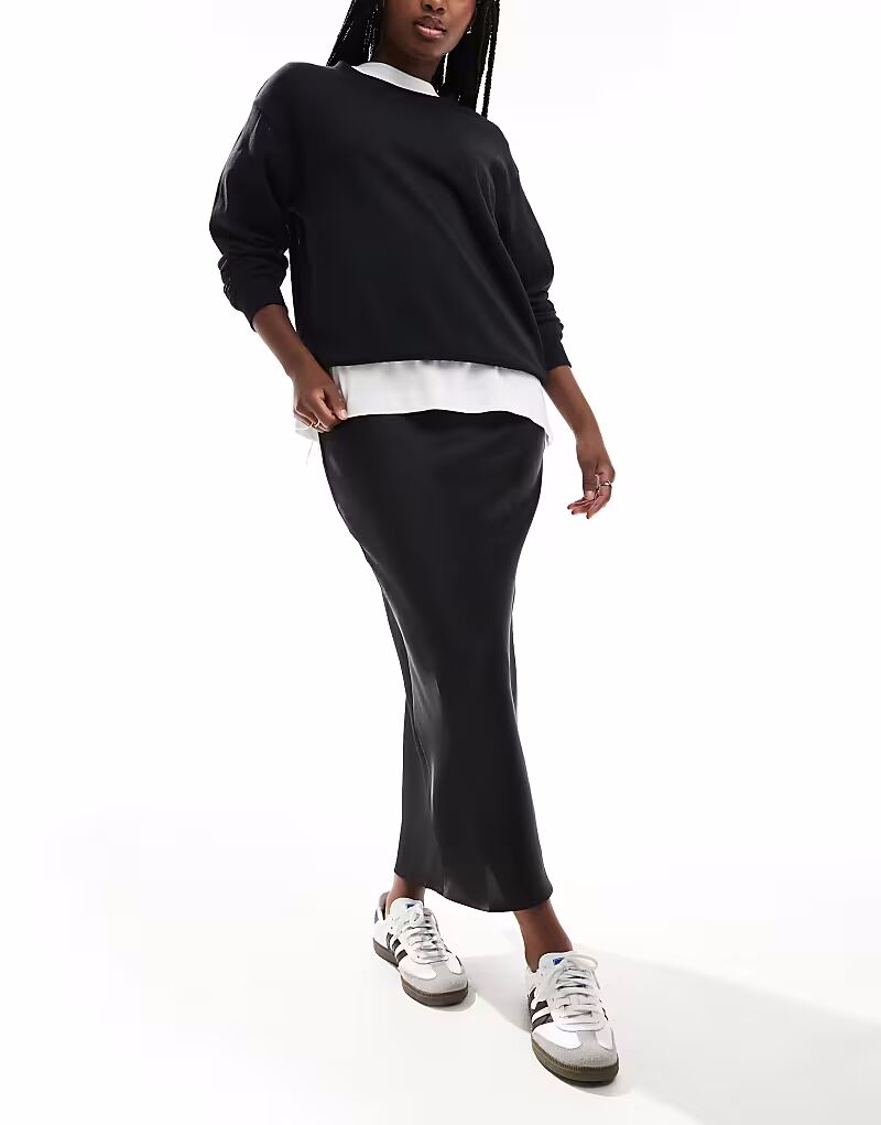 Юбка миди из атласа черного цвета Asos Design 4 676₽