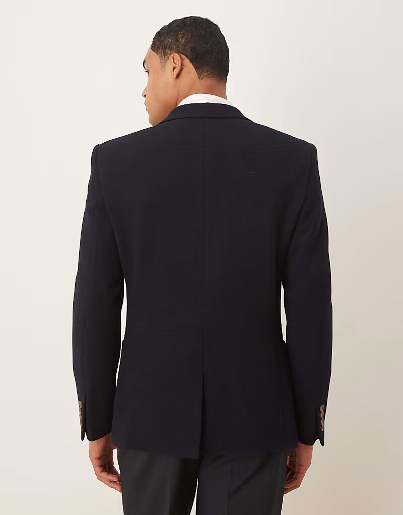 Узкий блейзер из темно-синего микротекстурированного материала Asos Design