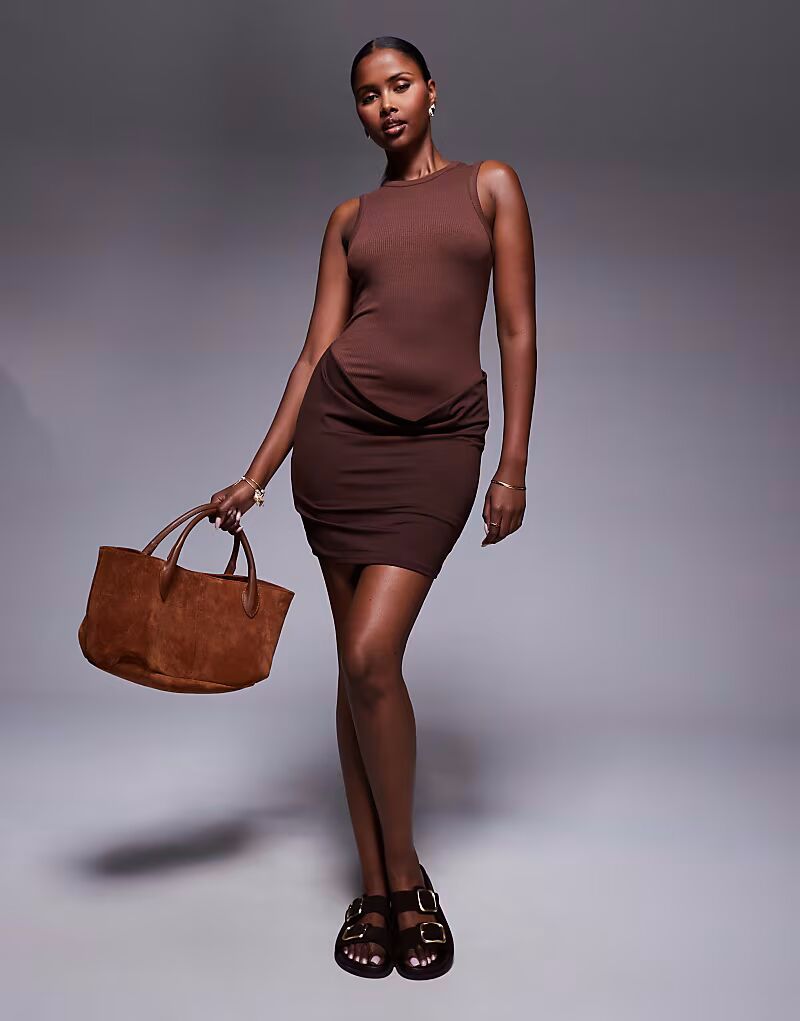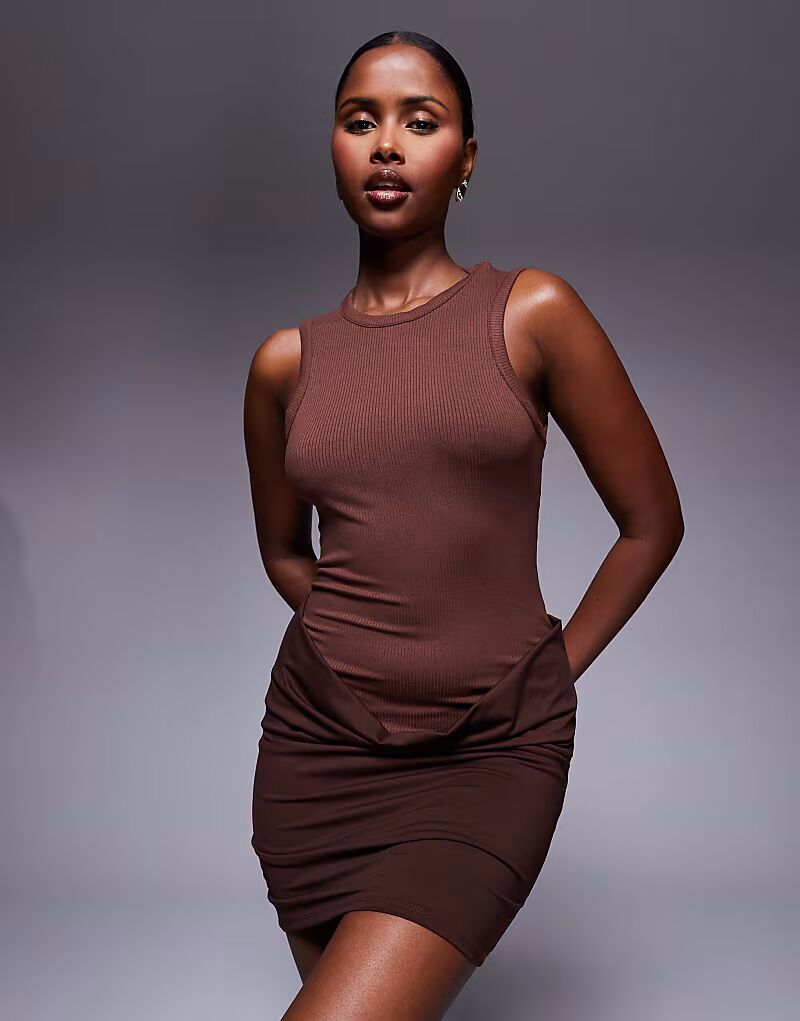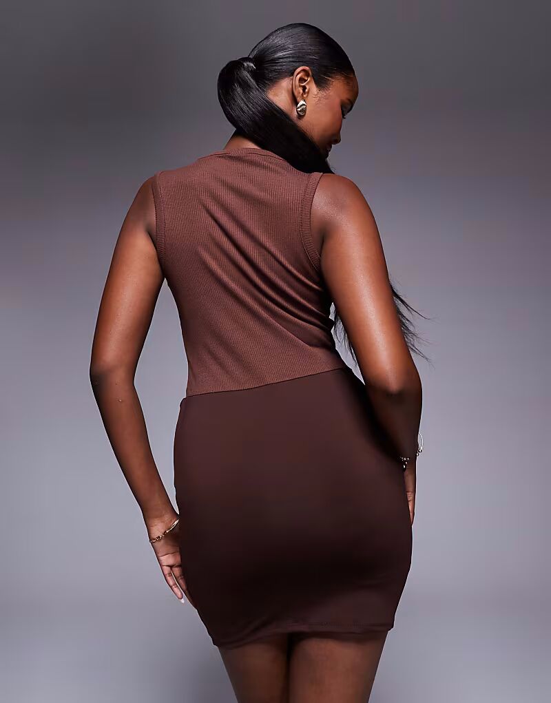 Мини-платье без рукавов, в рубчик, с облегающей юбкой шоколадного цвета Asos Design