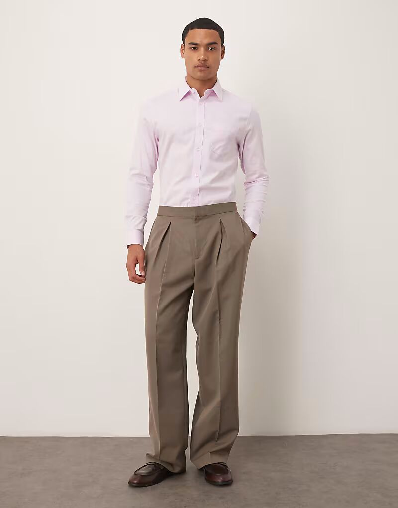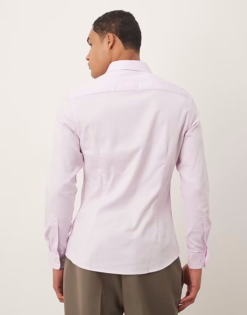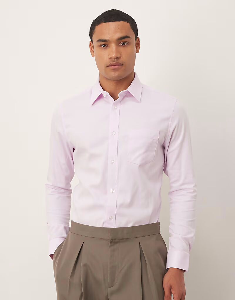 Рубашка с узким узором «в ёлочку» розового цвета Asos Design