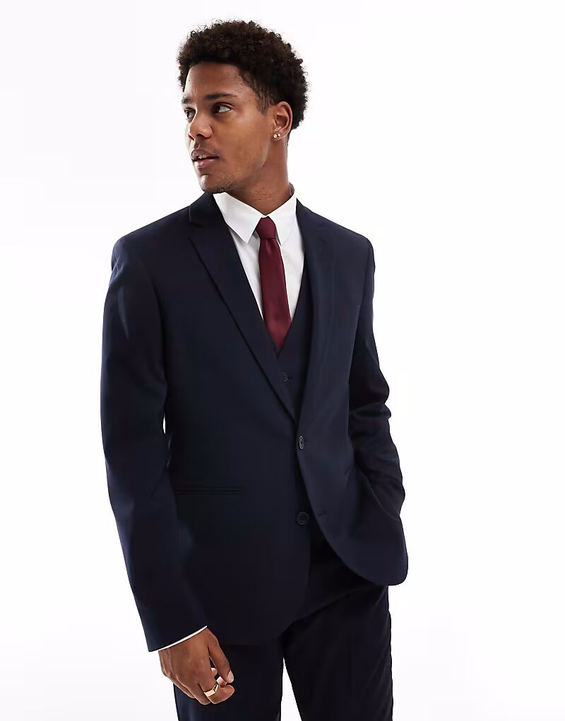 Тонкий пиджак темно-синего цвета Asos Design 9 526₽